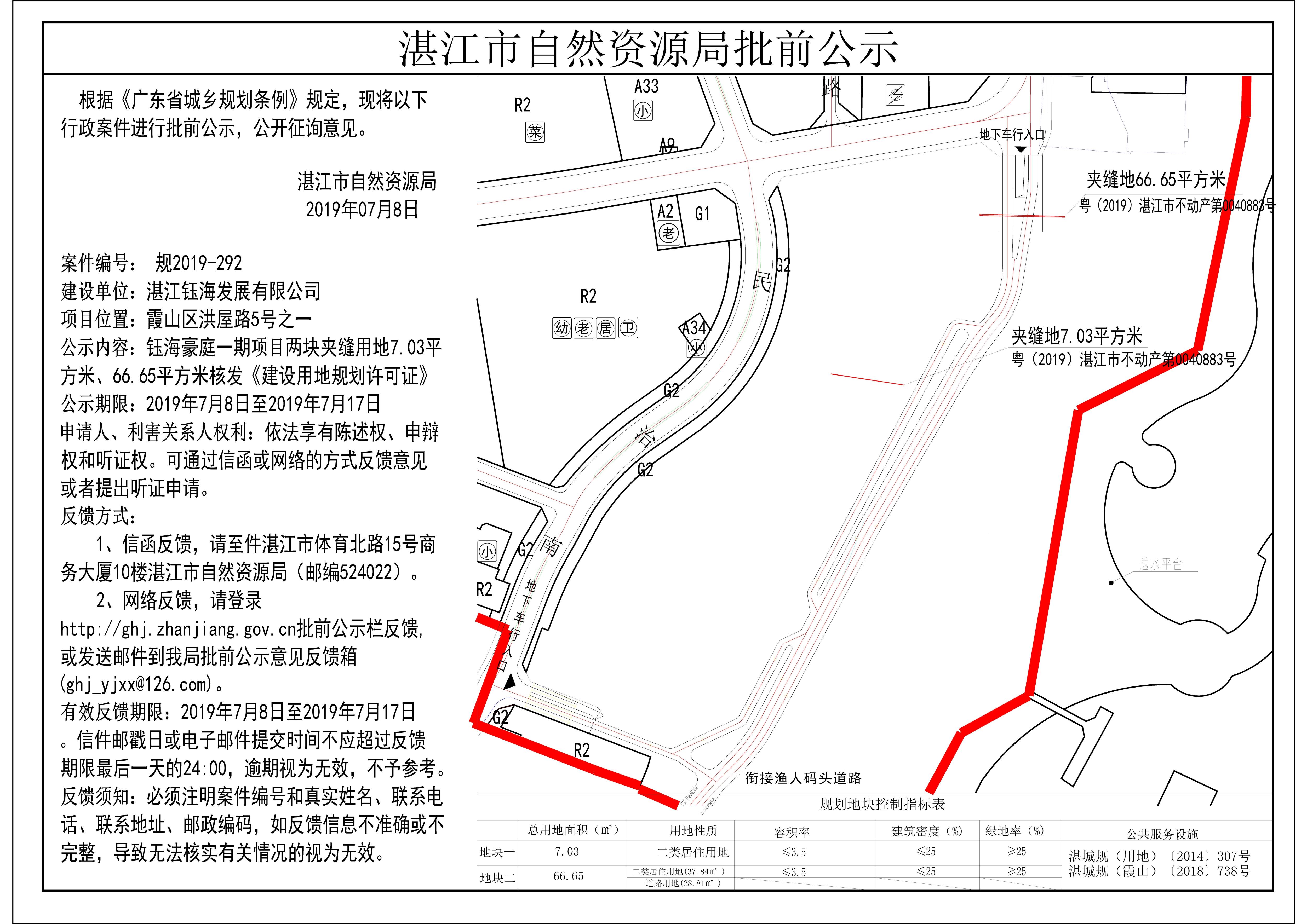 钰海豪庭一期项目两块夹缝用地7.03平方米、66.65平方米核发《建设用地规划许可证》批前公示