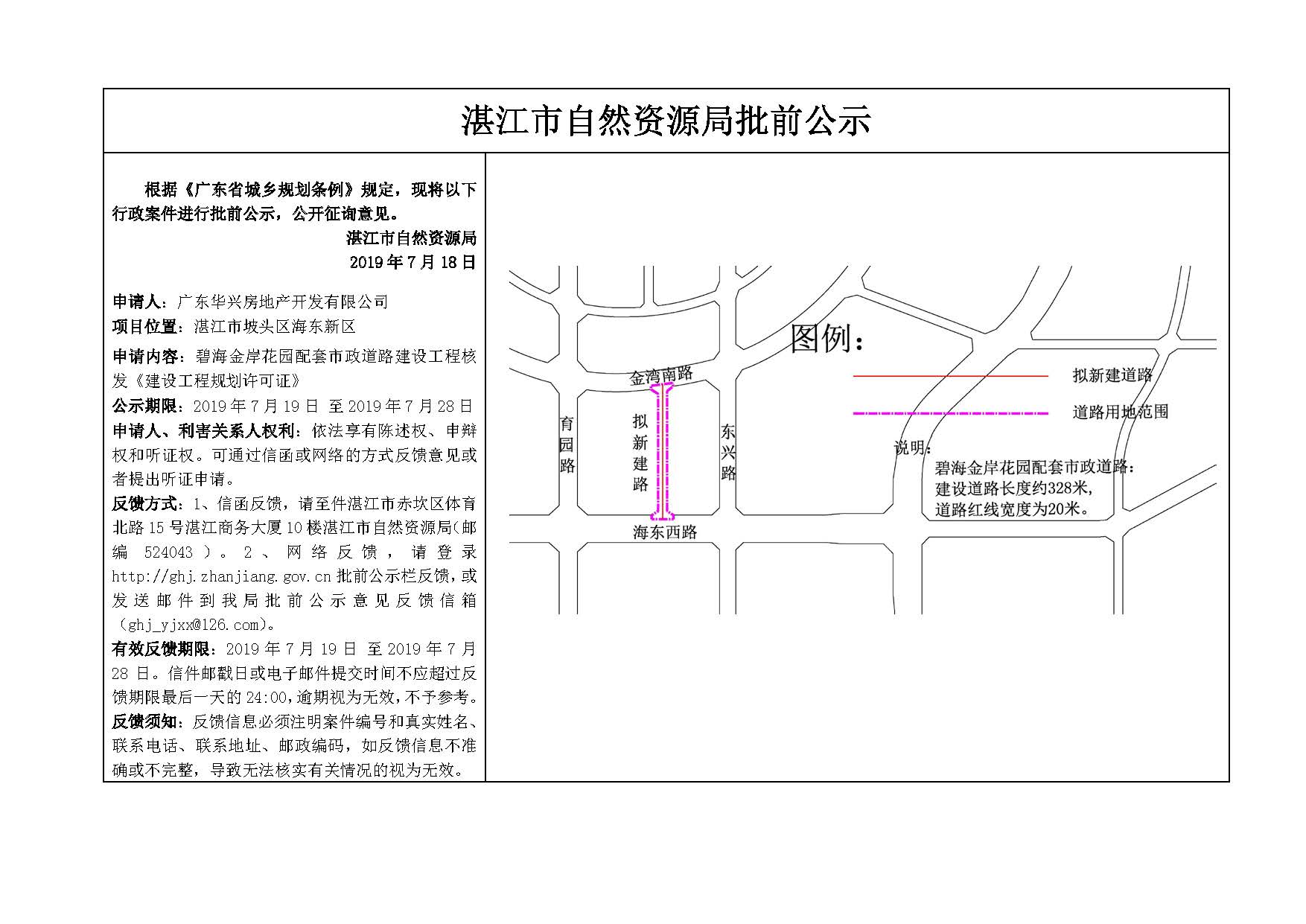 碧海金岸花园配套市政道路建设工程核发《建设工程规划许可证》批前公示