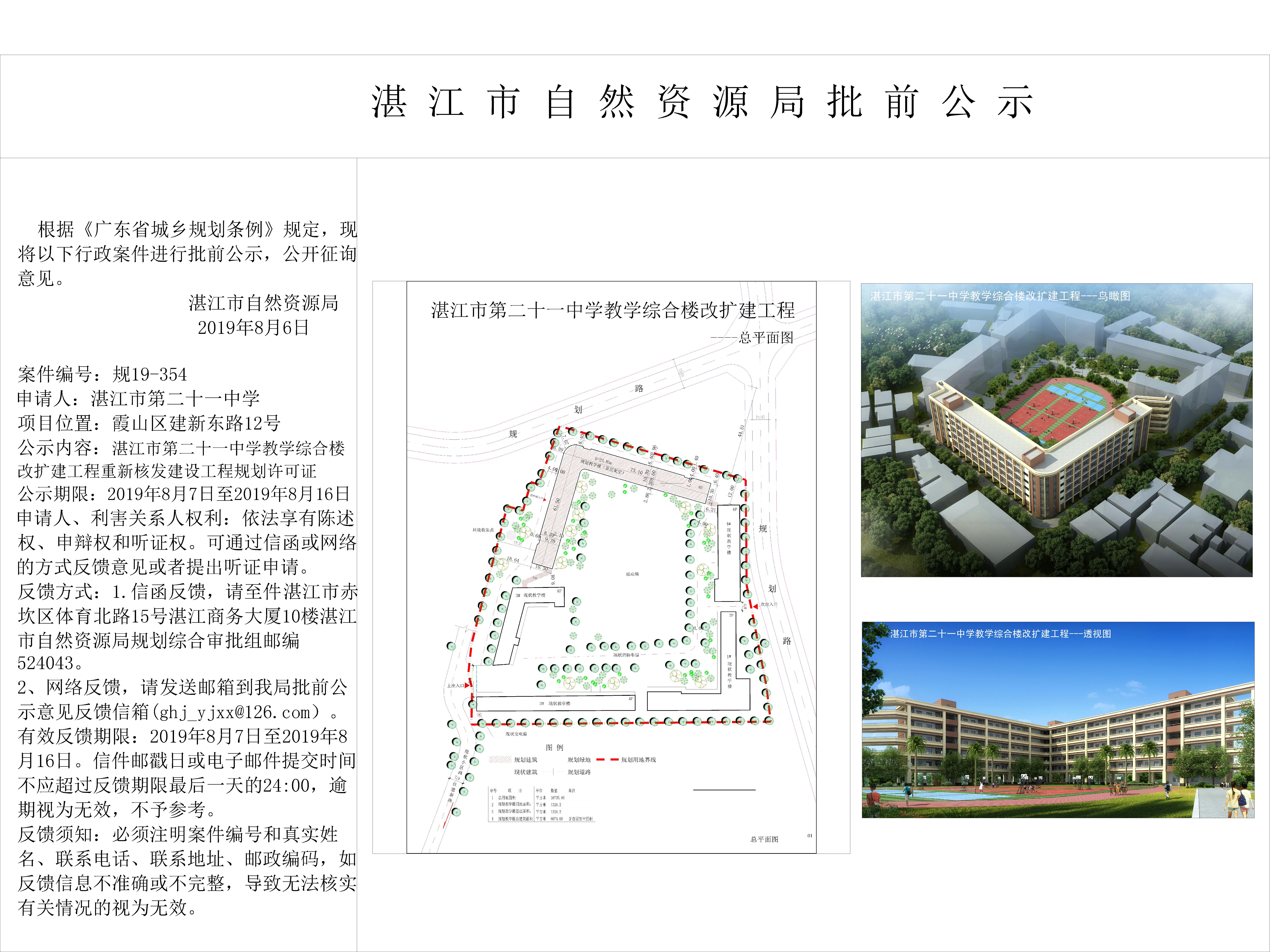 湛江市第二十一中学教学综合楼改扩建工程重新核发建设工程规划许可证批前公示