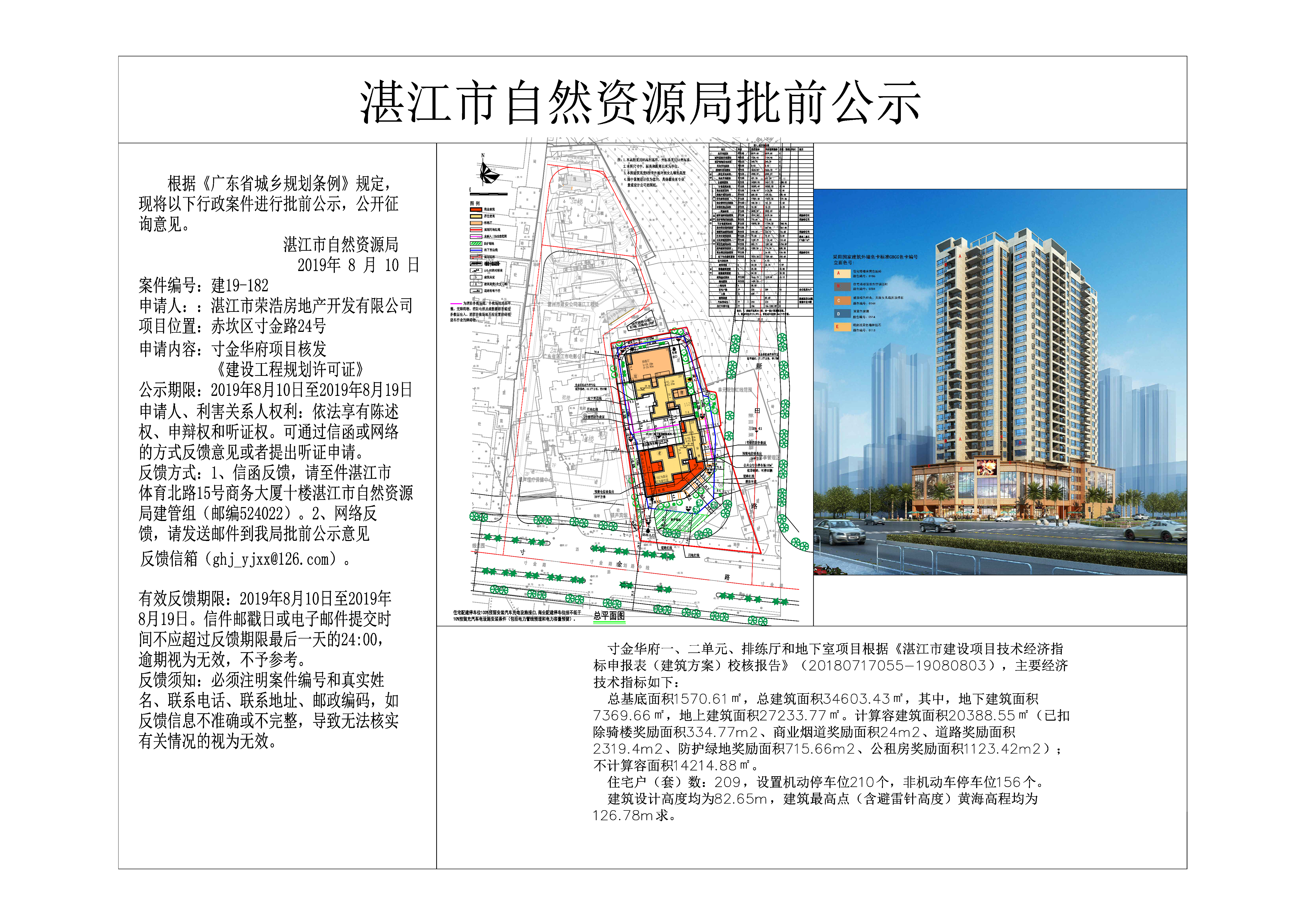寸金华府项目核发《建设工程规划许可证》批前公示