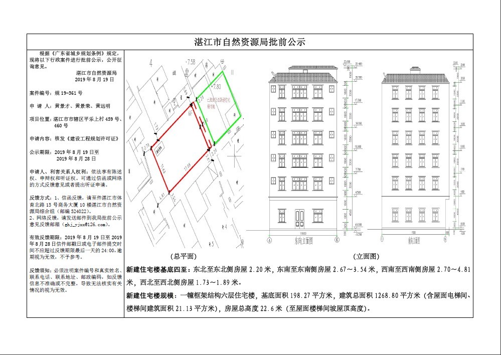 (黄景才、黄景荣、黄远明)核发《建设工程规划许可证》批前公示