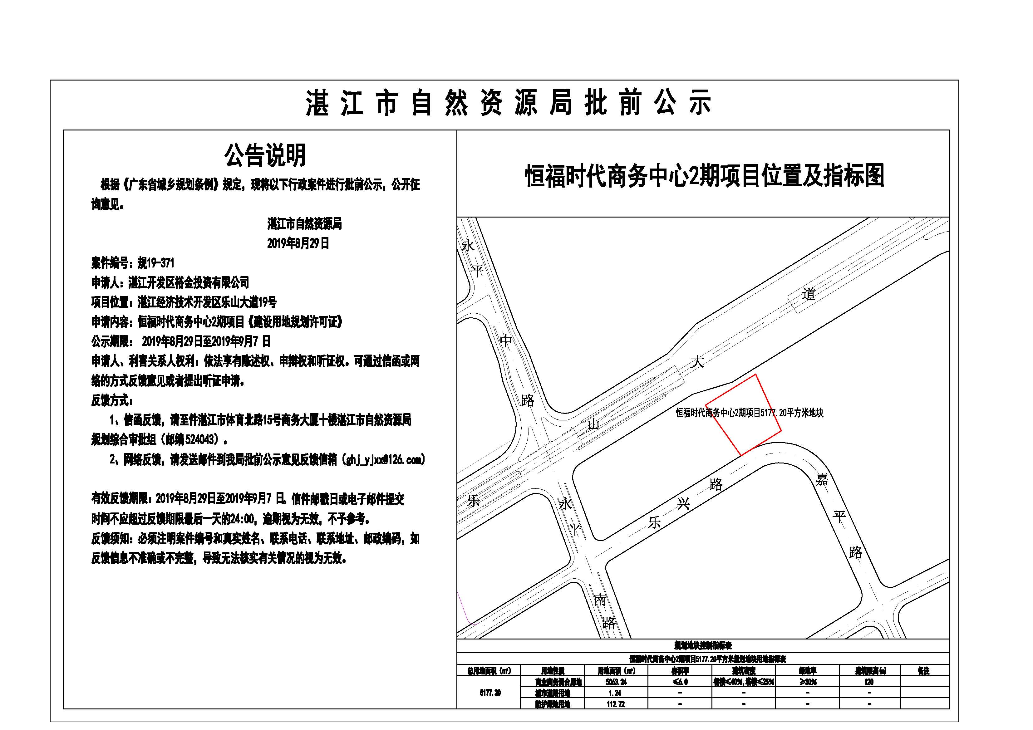 恒福时代商务中心2期项目《建设用地规划许可证》批前公示