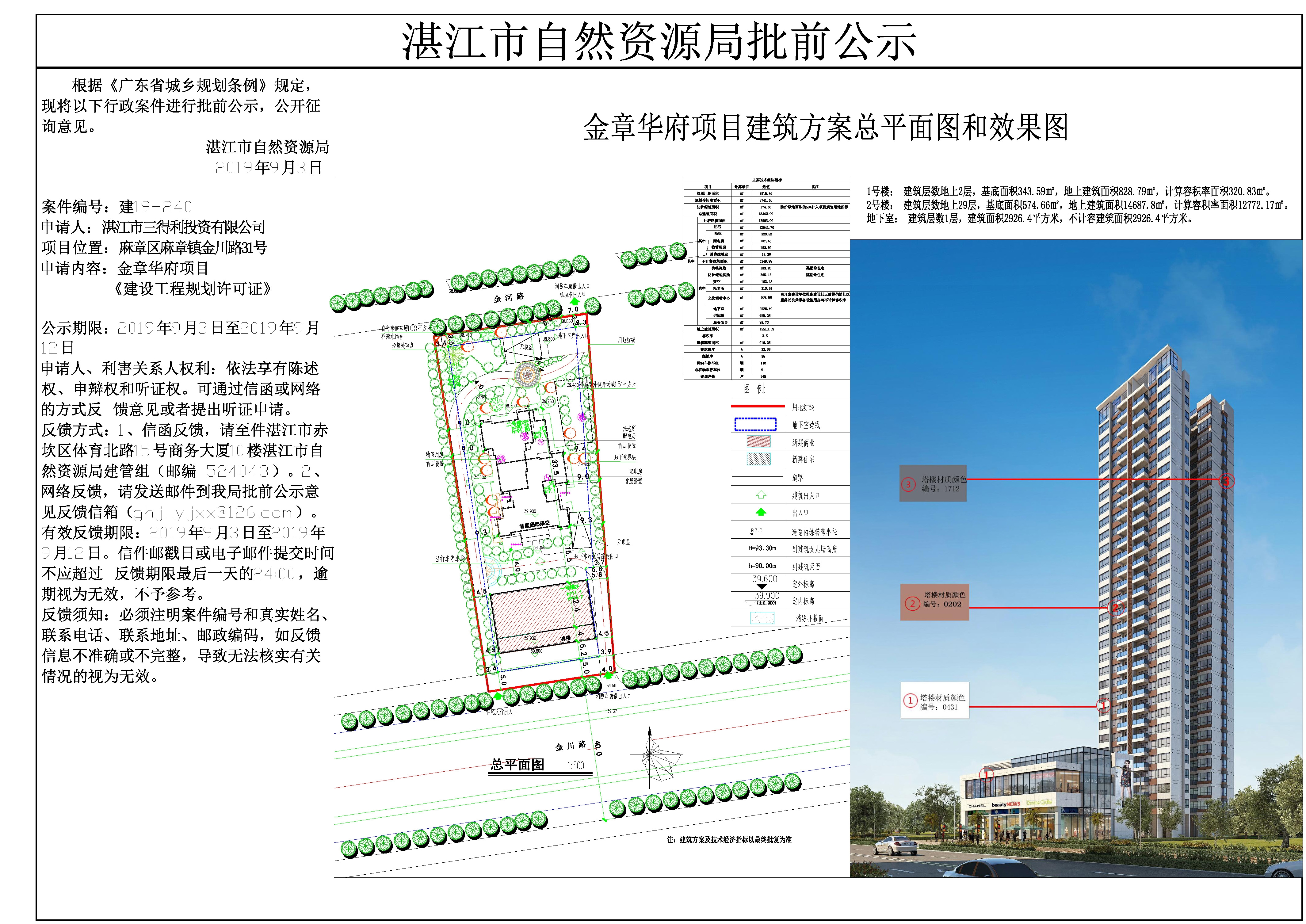 金章华府项目《建设工程规划许可证》批前公示