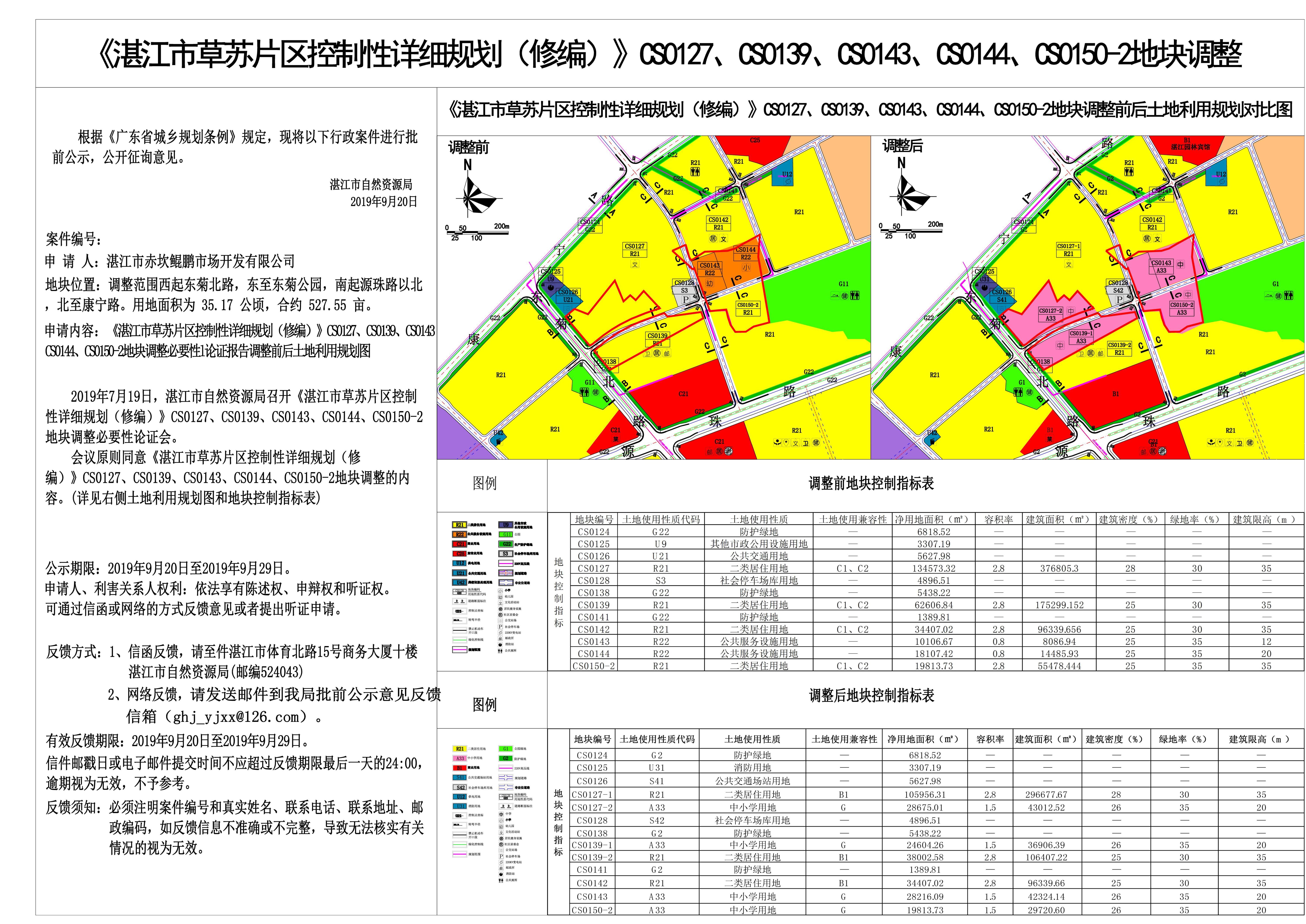 《湛江市草苏片区控制性详细规划(修编)》CS0127、CS0139、CS0143、CS0144、CS0150-2地块调整批前公示