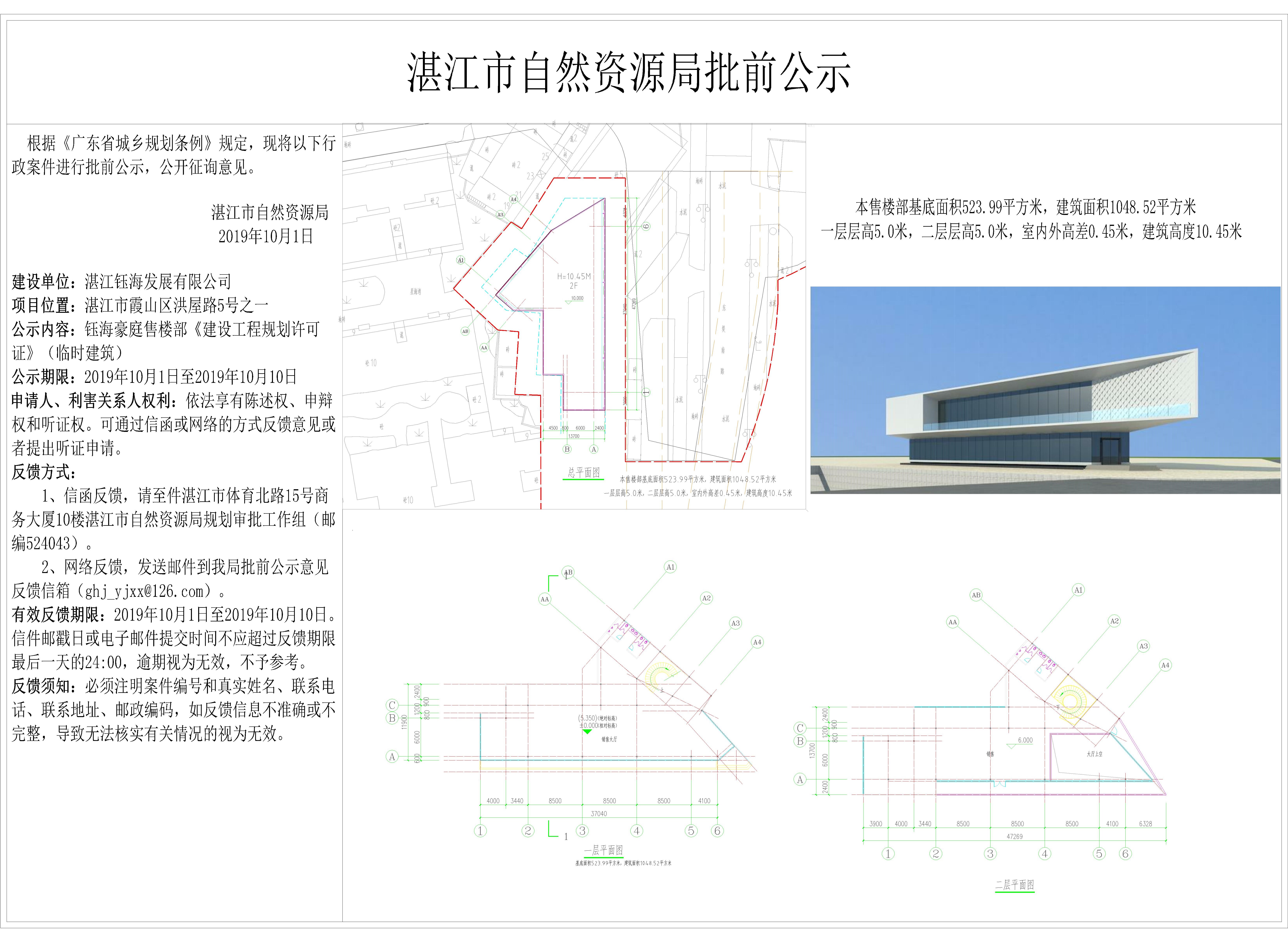 钰海豪庭售楼部《建设工程规划许可证》(临时建筑)批前公示