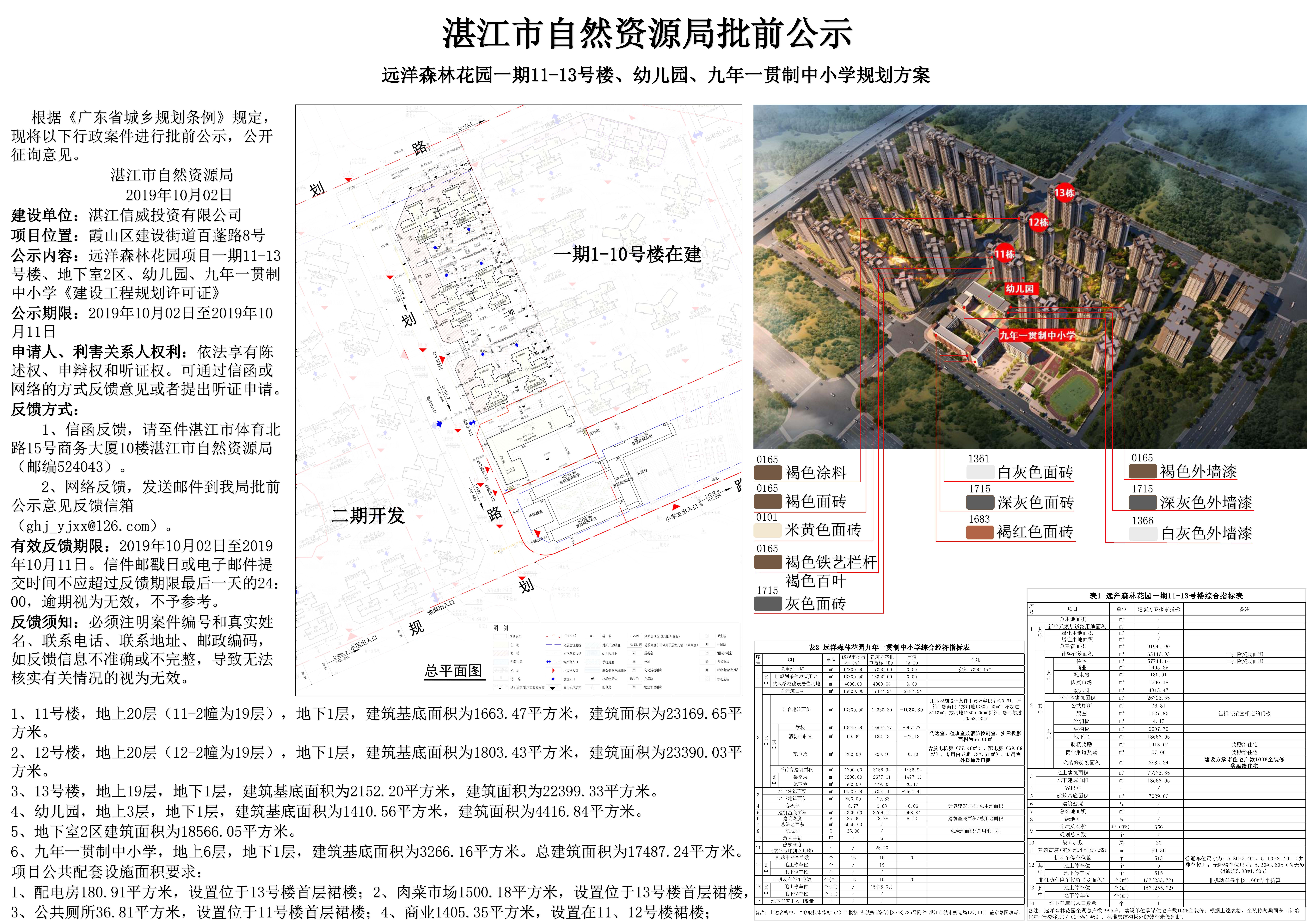 远洋森林花园项目一期11-13号楼、地下室2区、幼儿园、九年一贯制中小学《建设工程规划许可证》批前公示