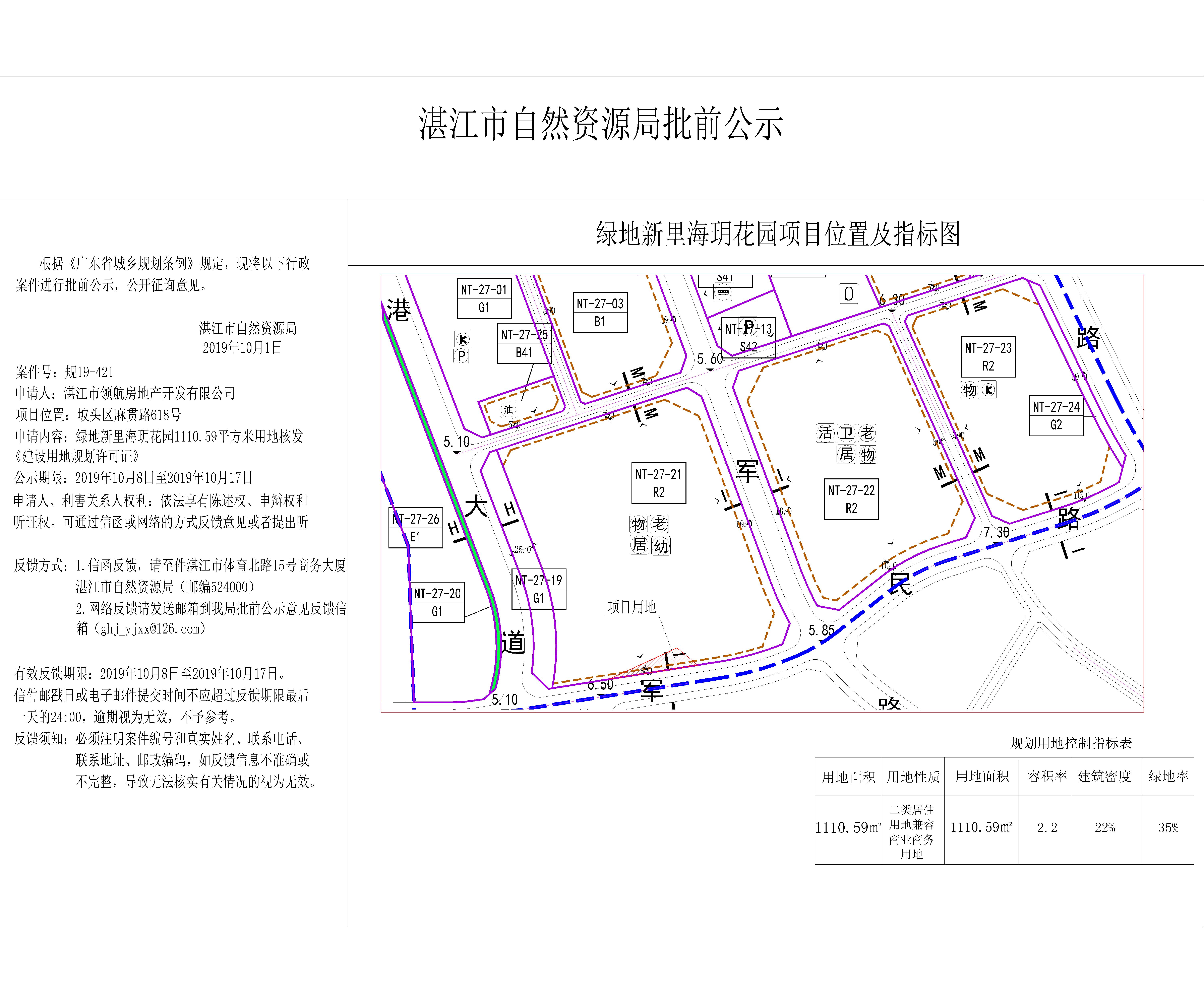 绿地新里海玥花园1110.59平方米用地核发《建设用地规划许可证》批前公示