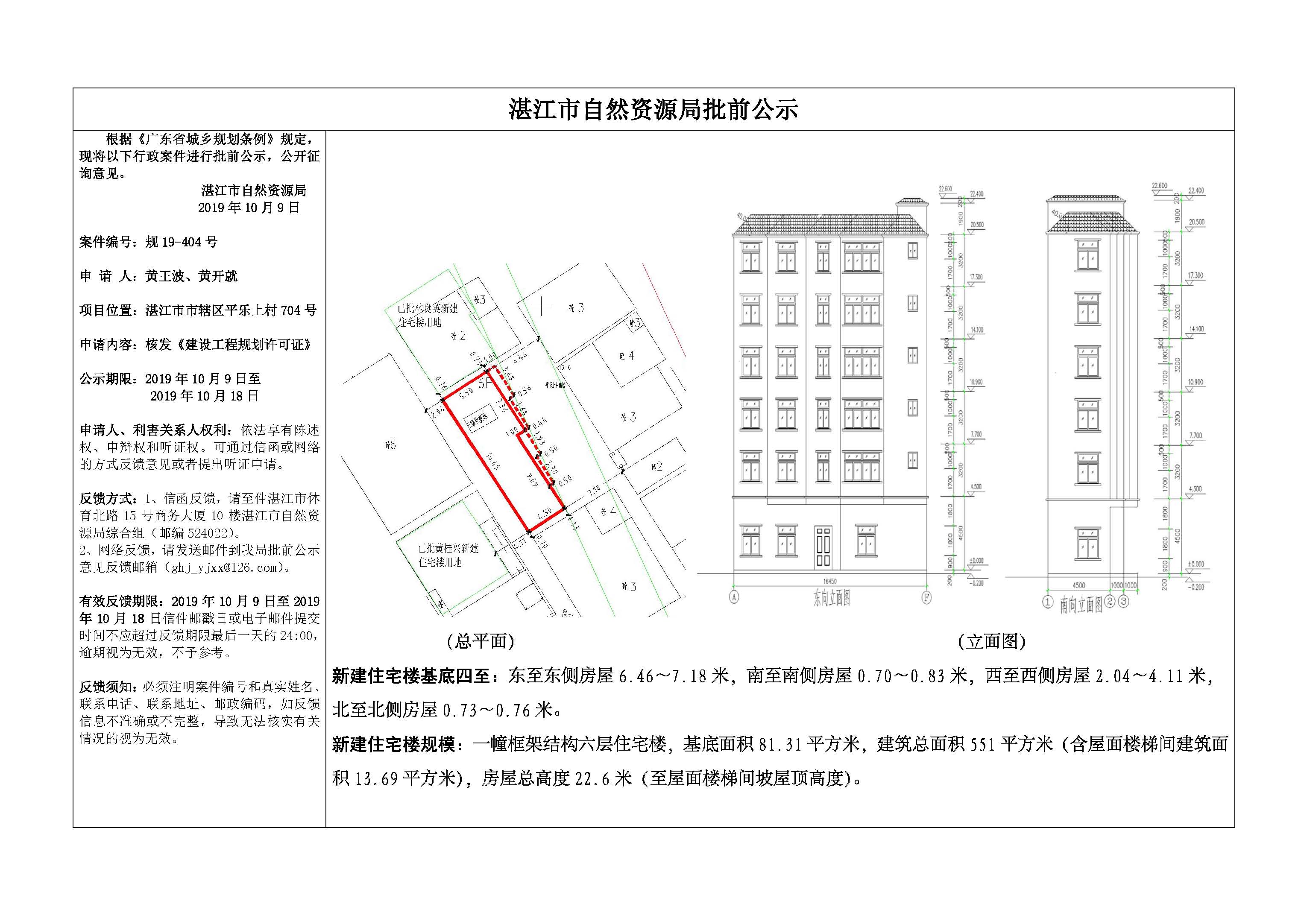 (黄王波、黄开就)核发《建设工程规划许可证》批前公示