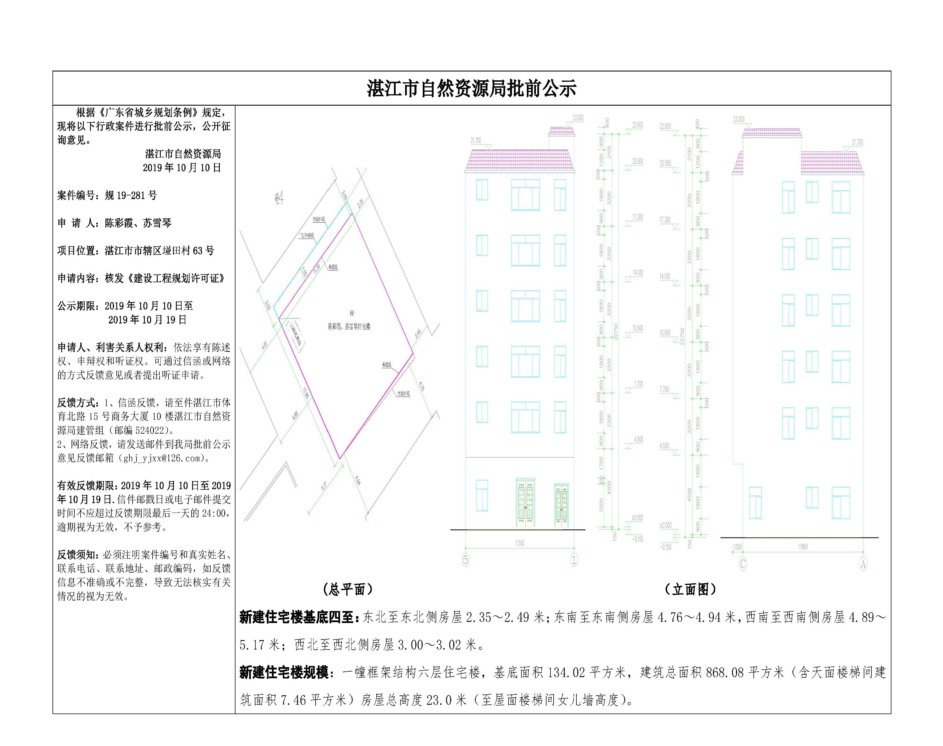 (陈彩霞、苏雪琴)核发《建设工程规划许可证》批前公示
