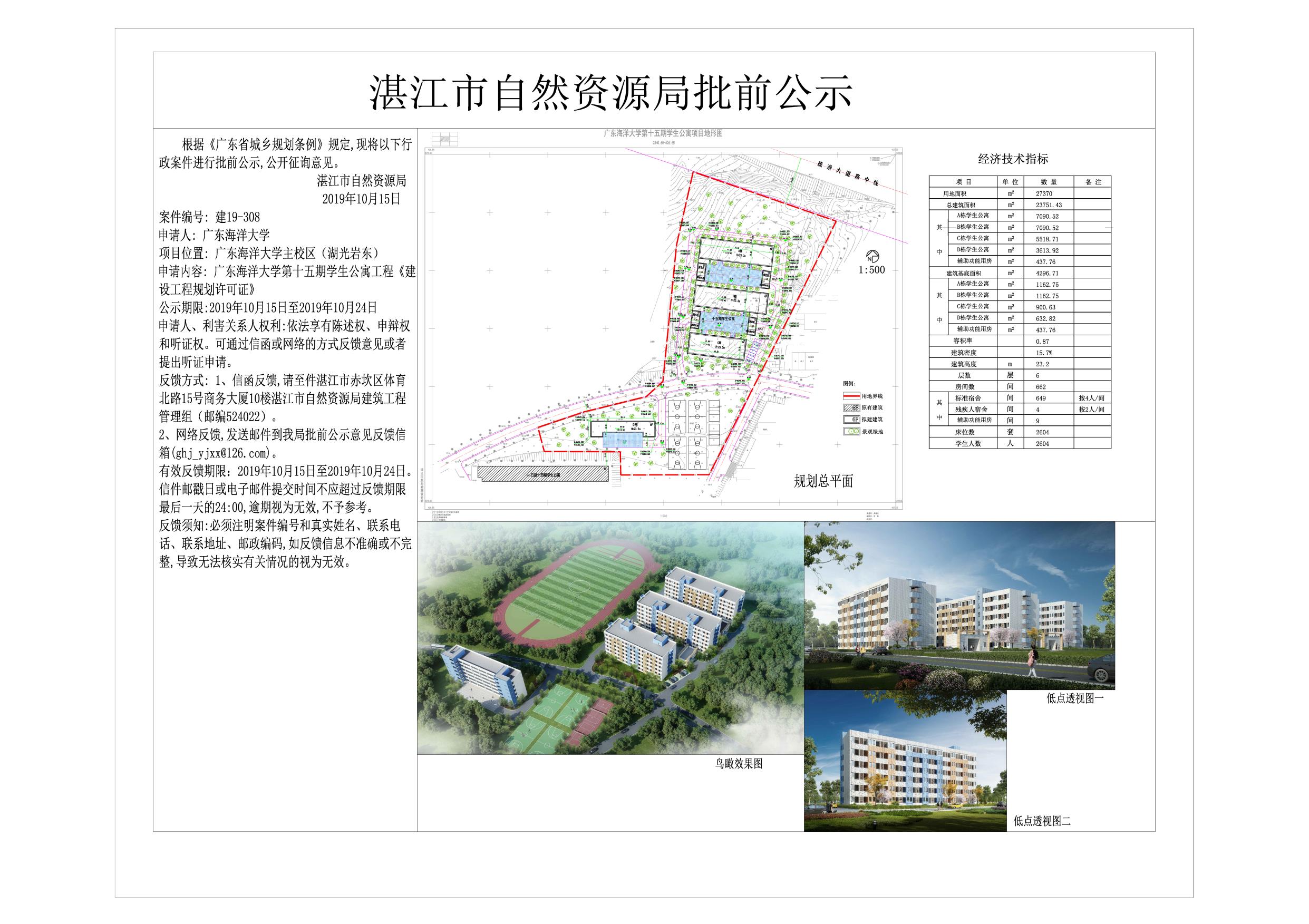 广东海洋大学第十五期学生公寓工程《建设工程规划许可证》批前公示