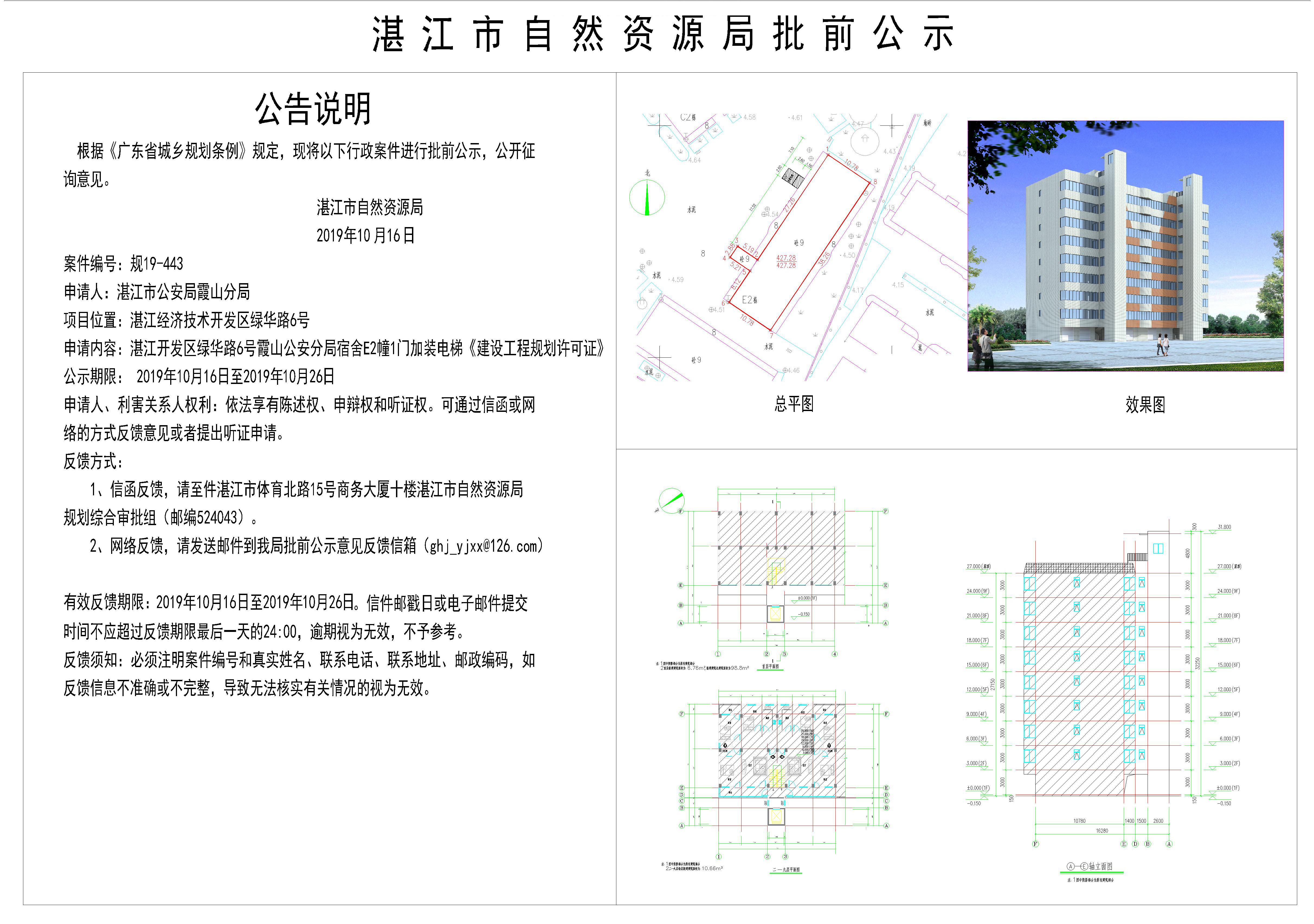 湛江开发区绿化路6号霞山公安分局宿舍E2幢1门加装电梯《建设工程规划许可证》批前公示