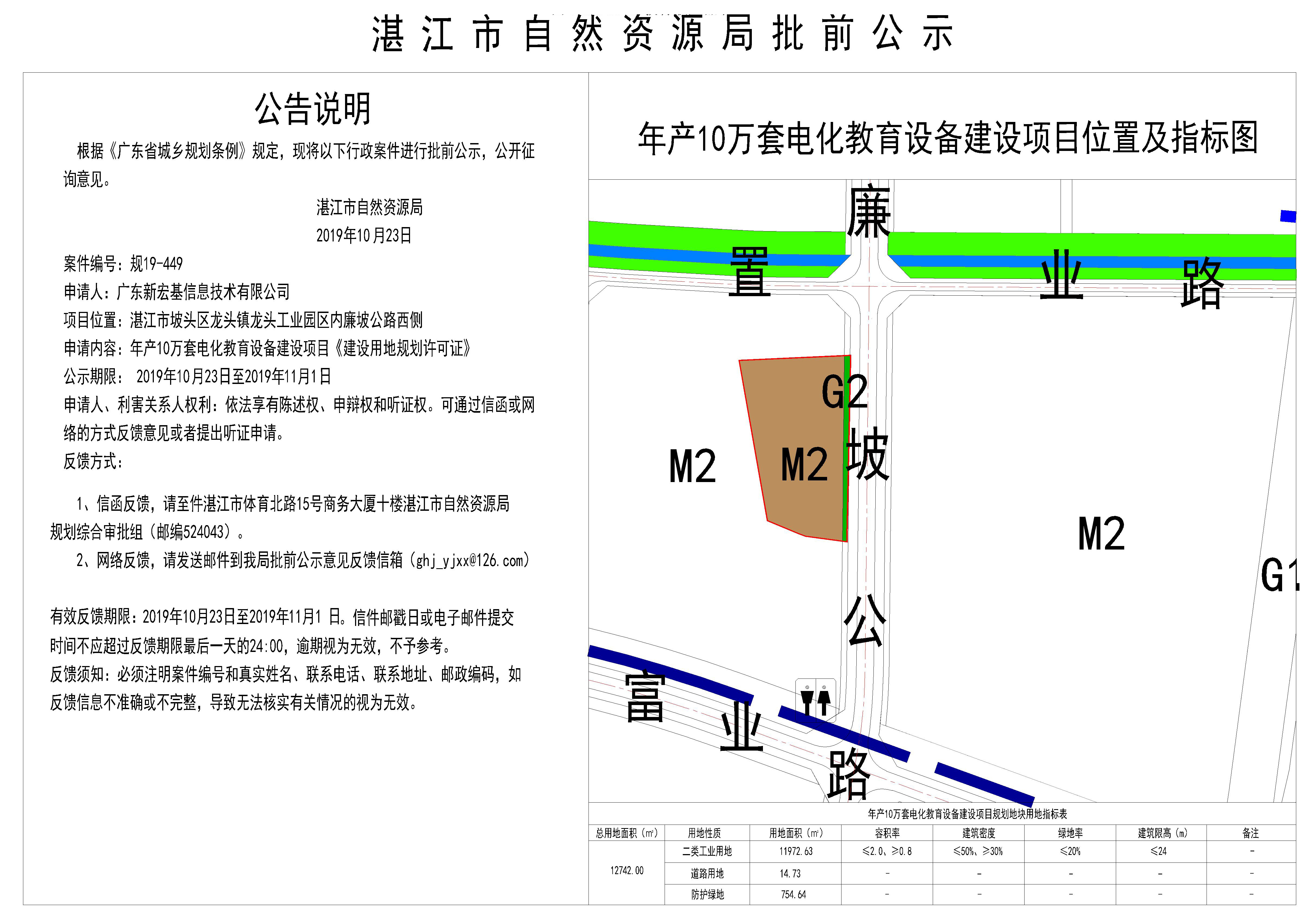 年产10万套电化教育设备建设项目《建设用地规划许可证》批前公示