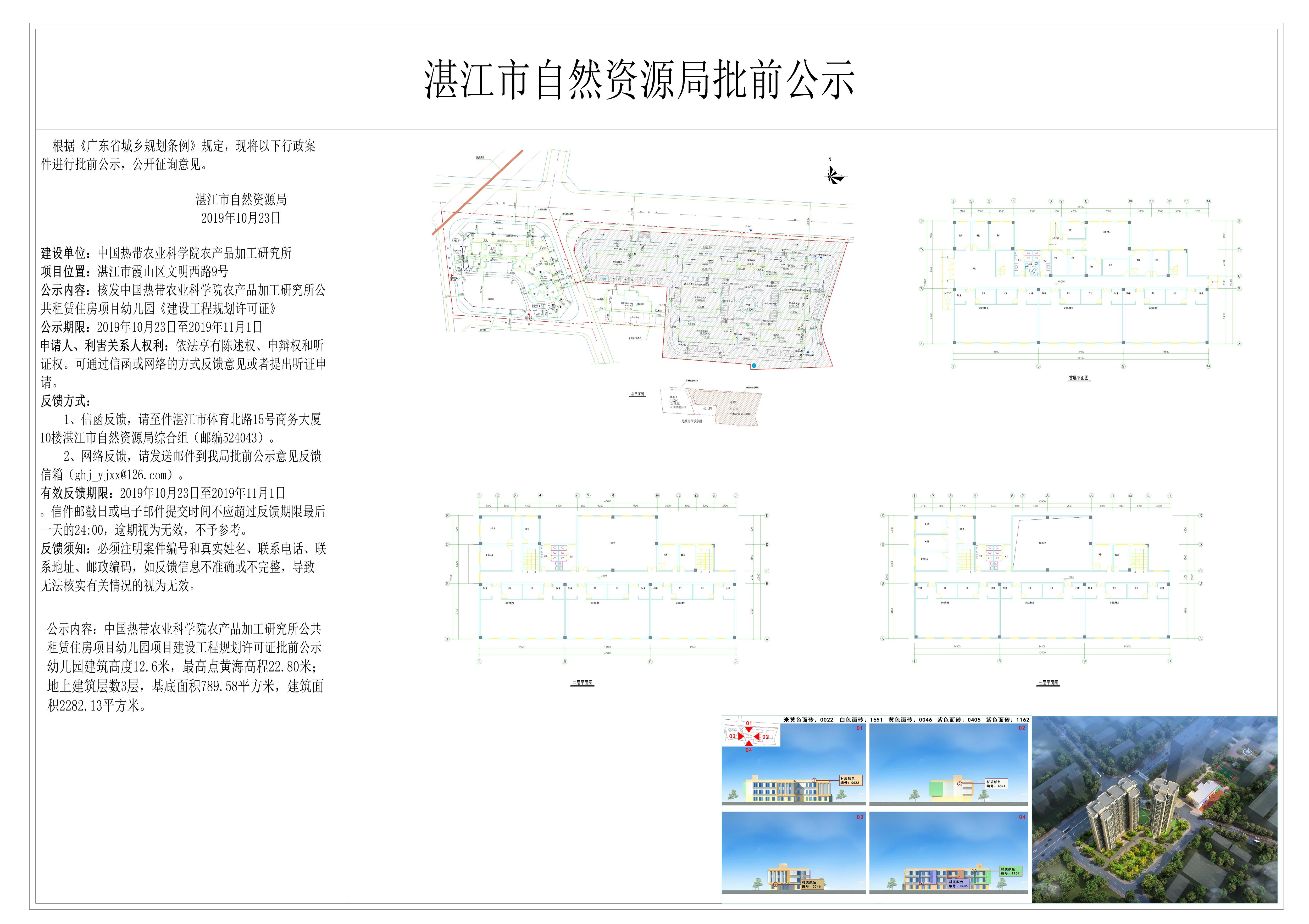 核发中国热带农业科学院农产品加工研究所公共租赁住房项目幼儿园《建设工程规划许可证》批前公示