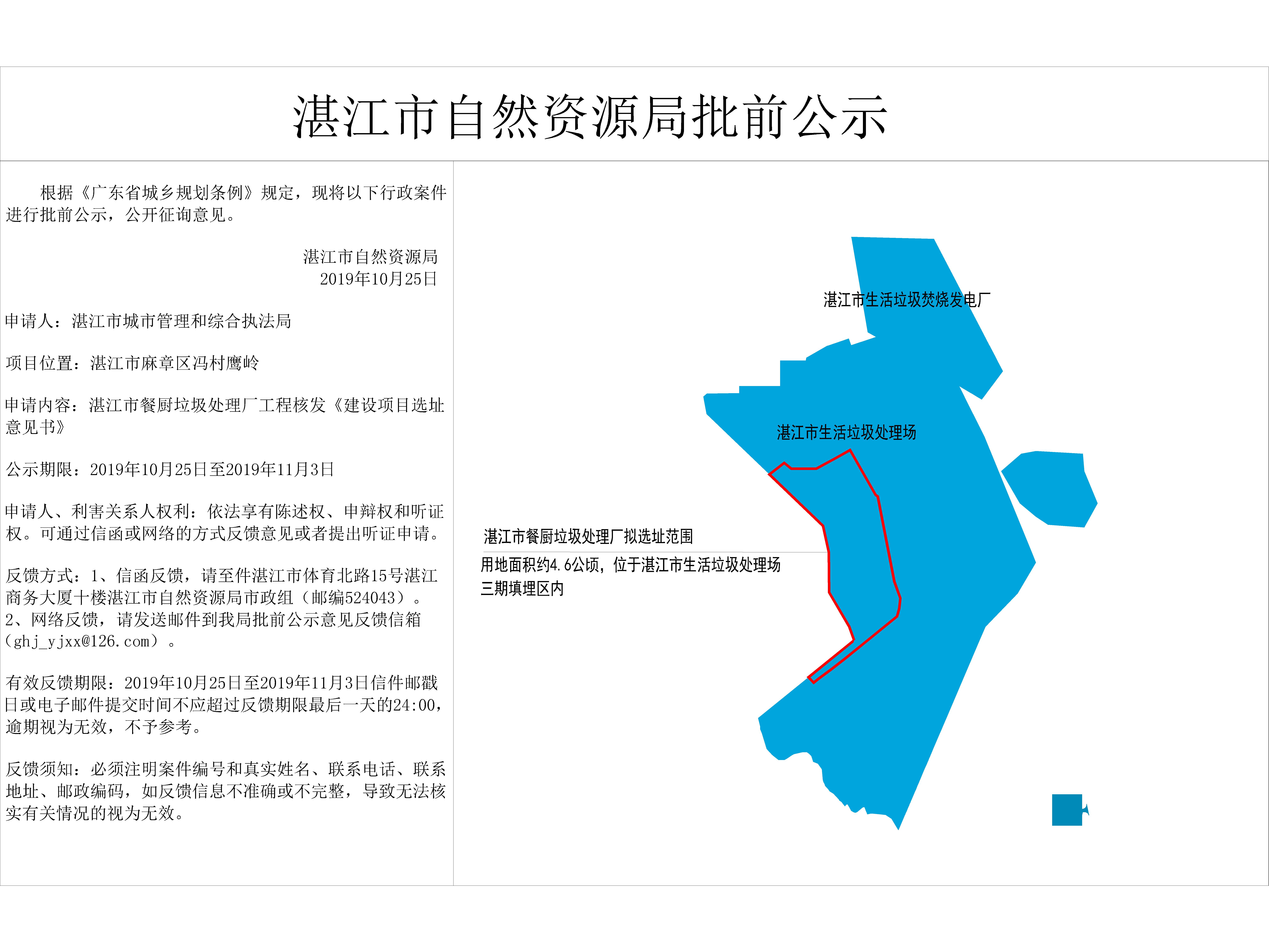湛江市餐厨垃圾处理厂工程核发《建设项目选址意见书》批前公示