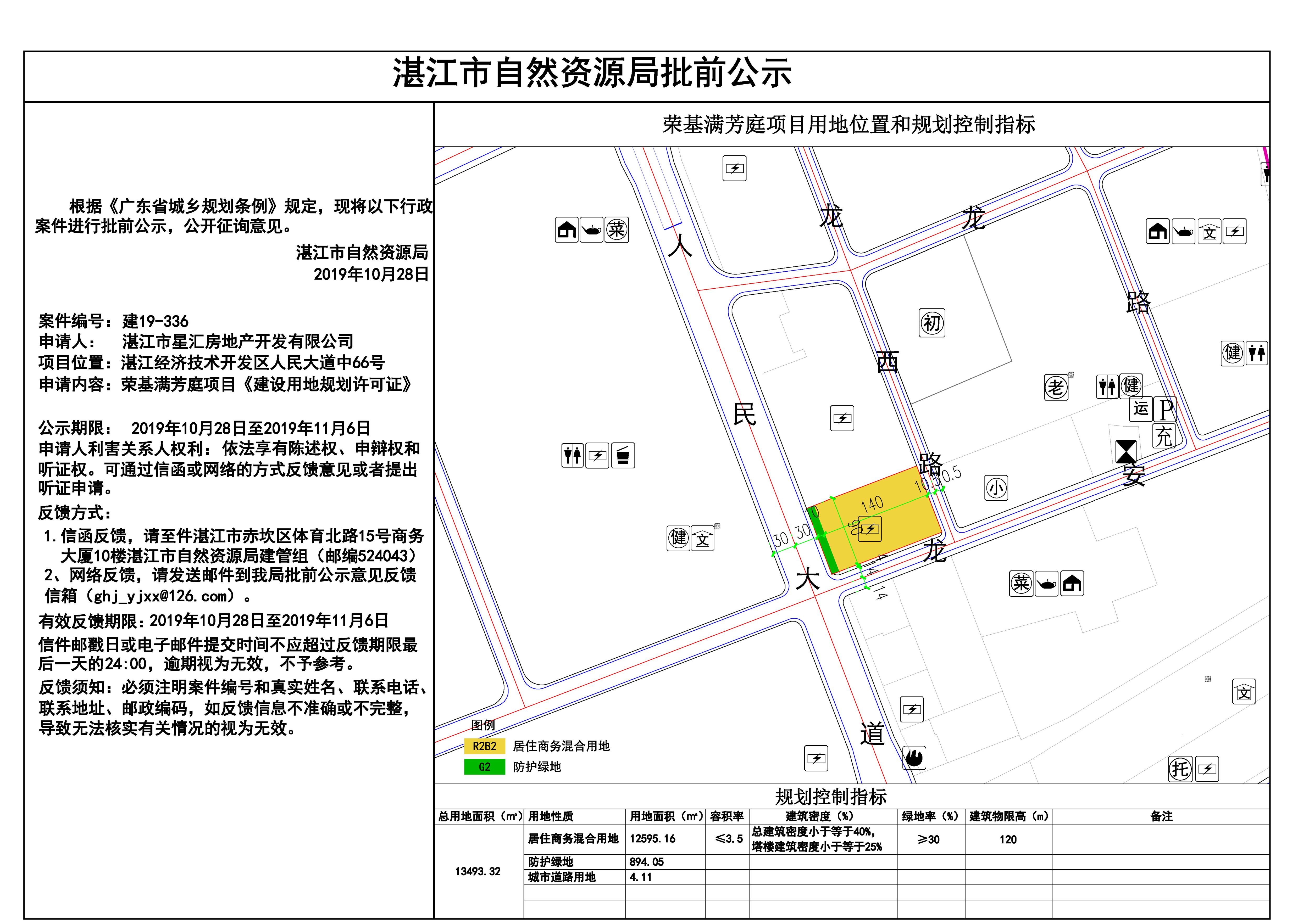 荣基满芳庭项目《建设用地规划许可证》批前公示
