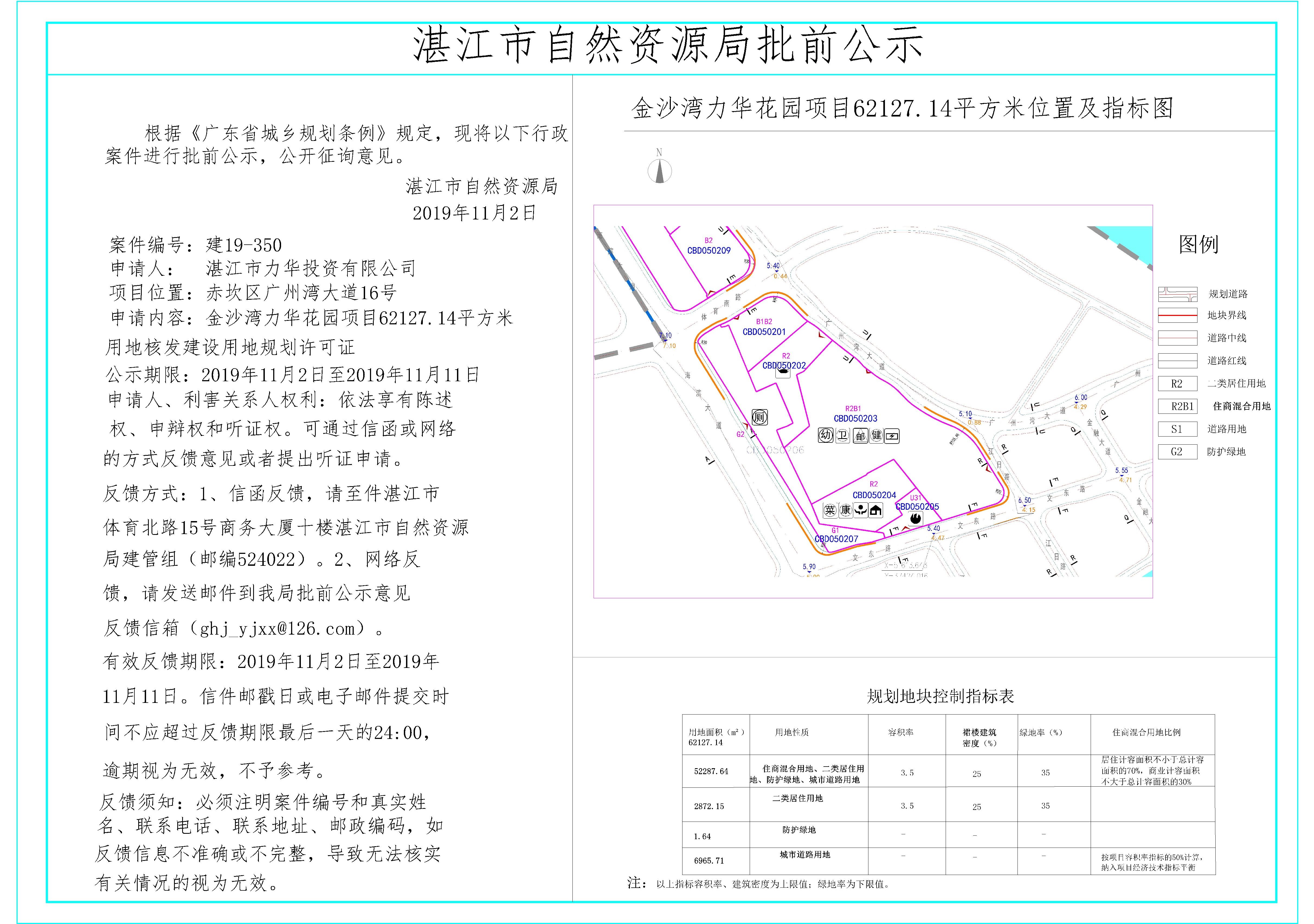 金沙湾力华花园项目62127.14平方米用地核发《建设用地规划许可证》批前公示