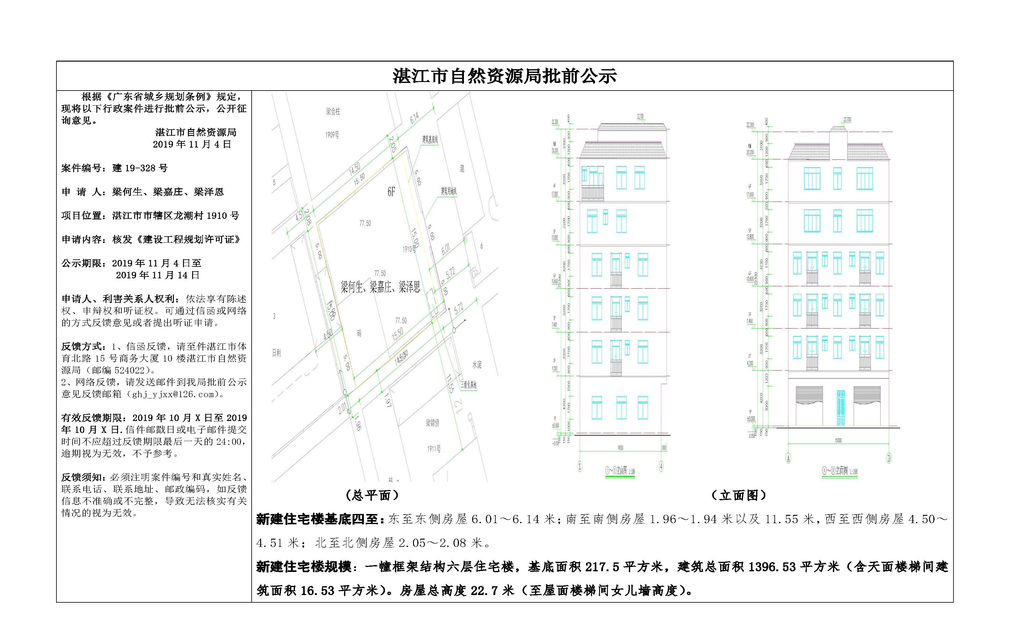 (梁何生、梁嘉庄、梁泽恩)核发《建设工程规划许可证》批前公示