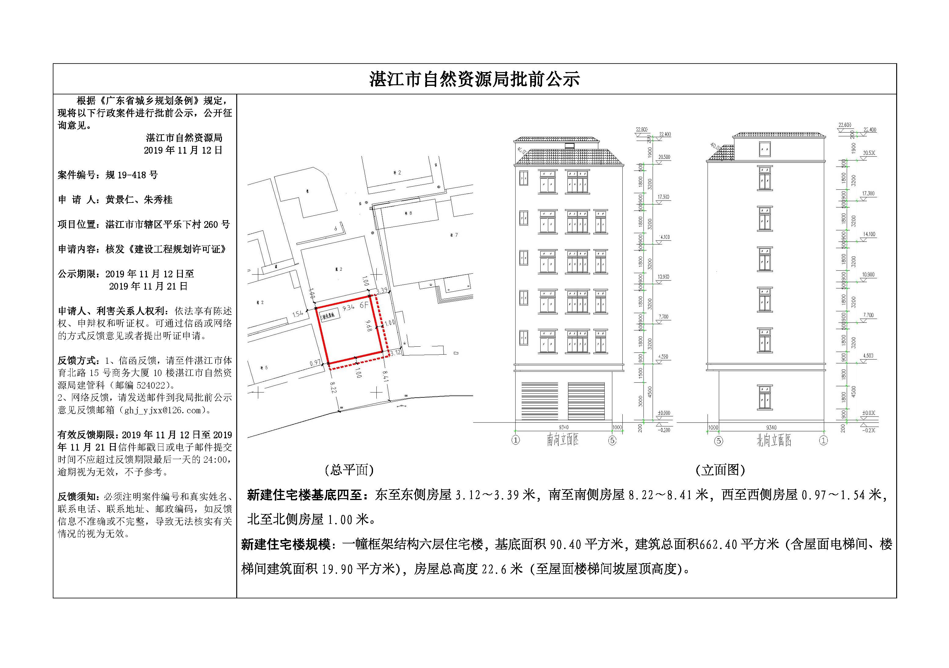 (黄景仁、朱秀桂)核发《建设工程规划许可证》批前公示
