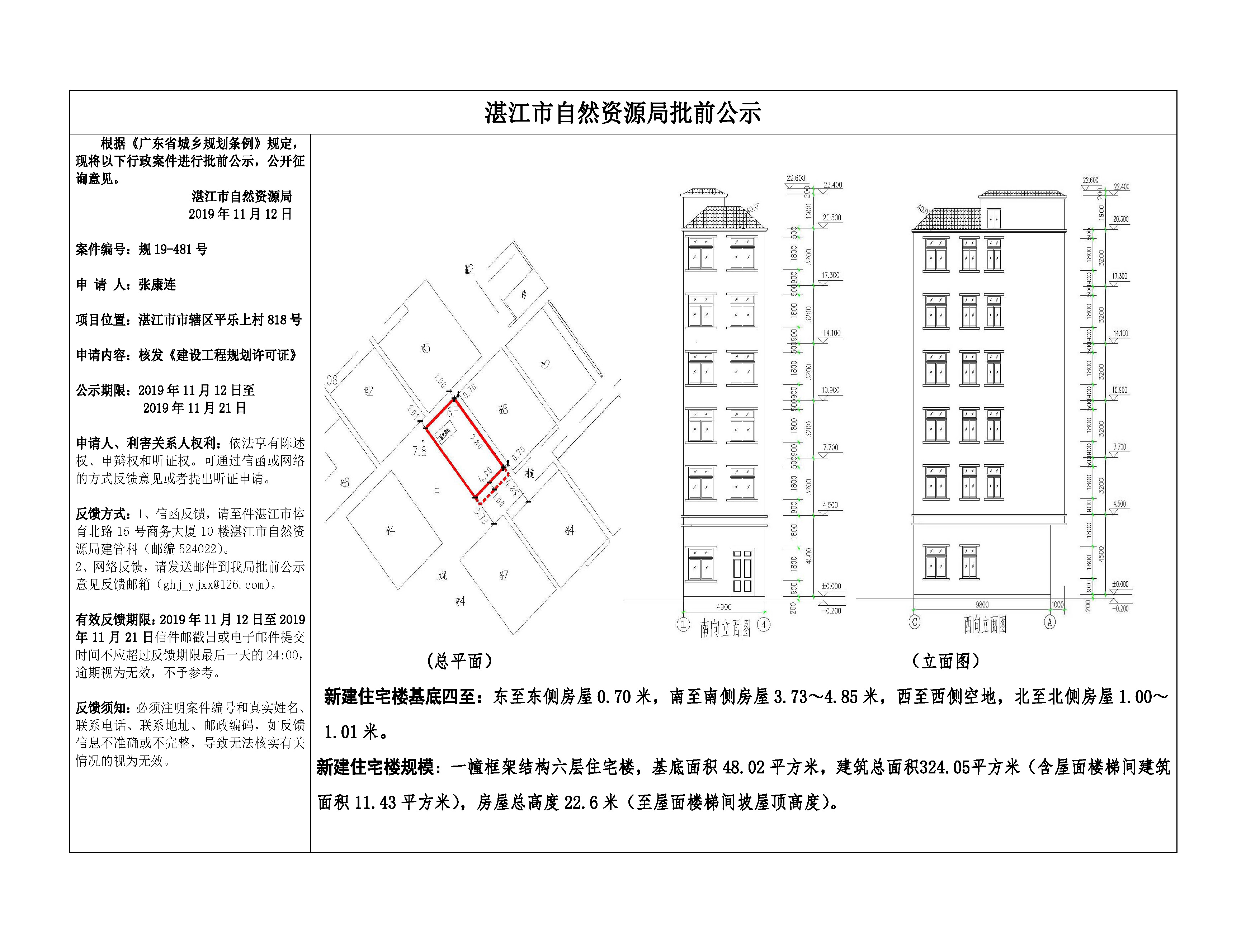 (张康连)核发《建设工程规划许可证》批前公示