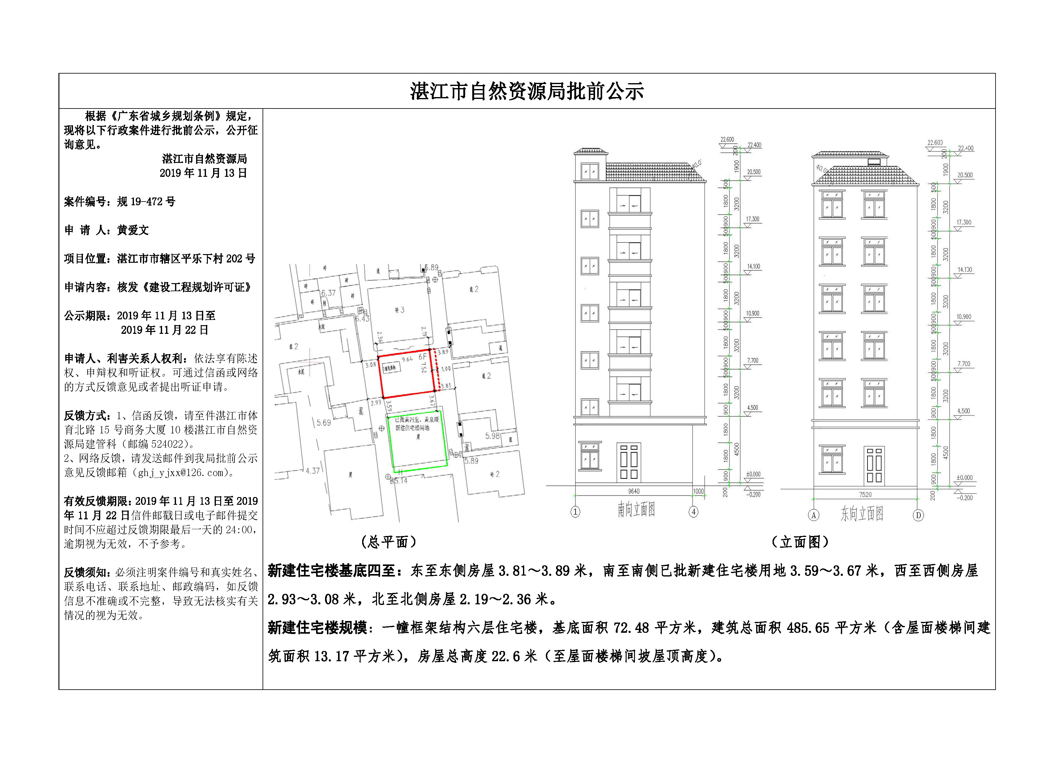(黄爱文)核发《建设工程规划许可证》批前公示