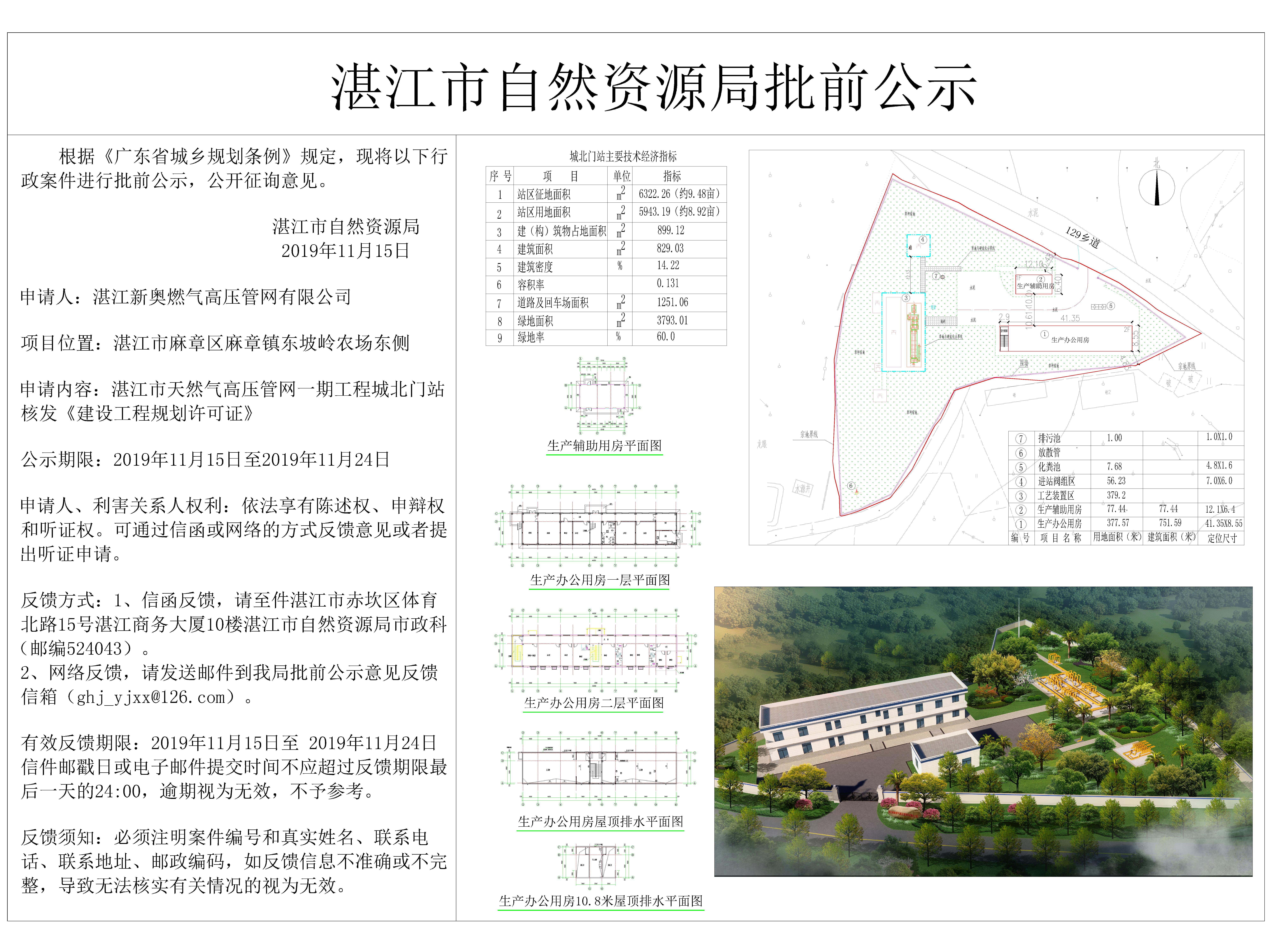 湛江市天然气高压管网一期工程城北门站核发《建设工程规划许可证》批前公示