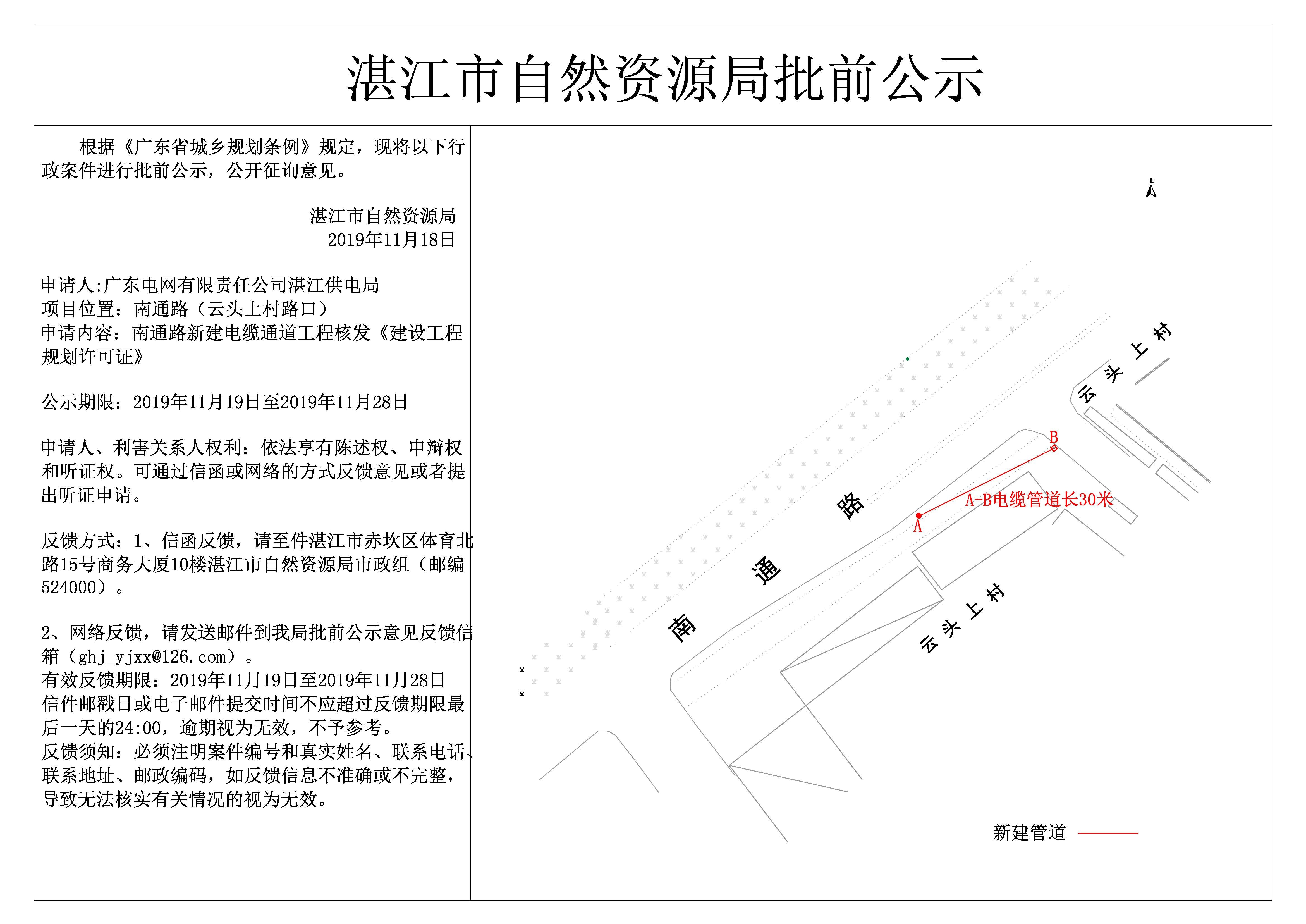 南通路新建电缆通道工程核发《建设工程规划许可证》批前公示