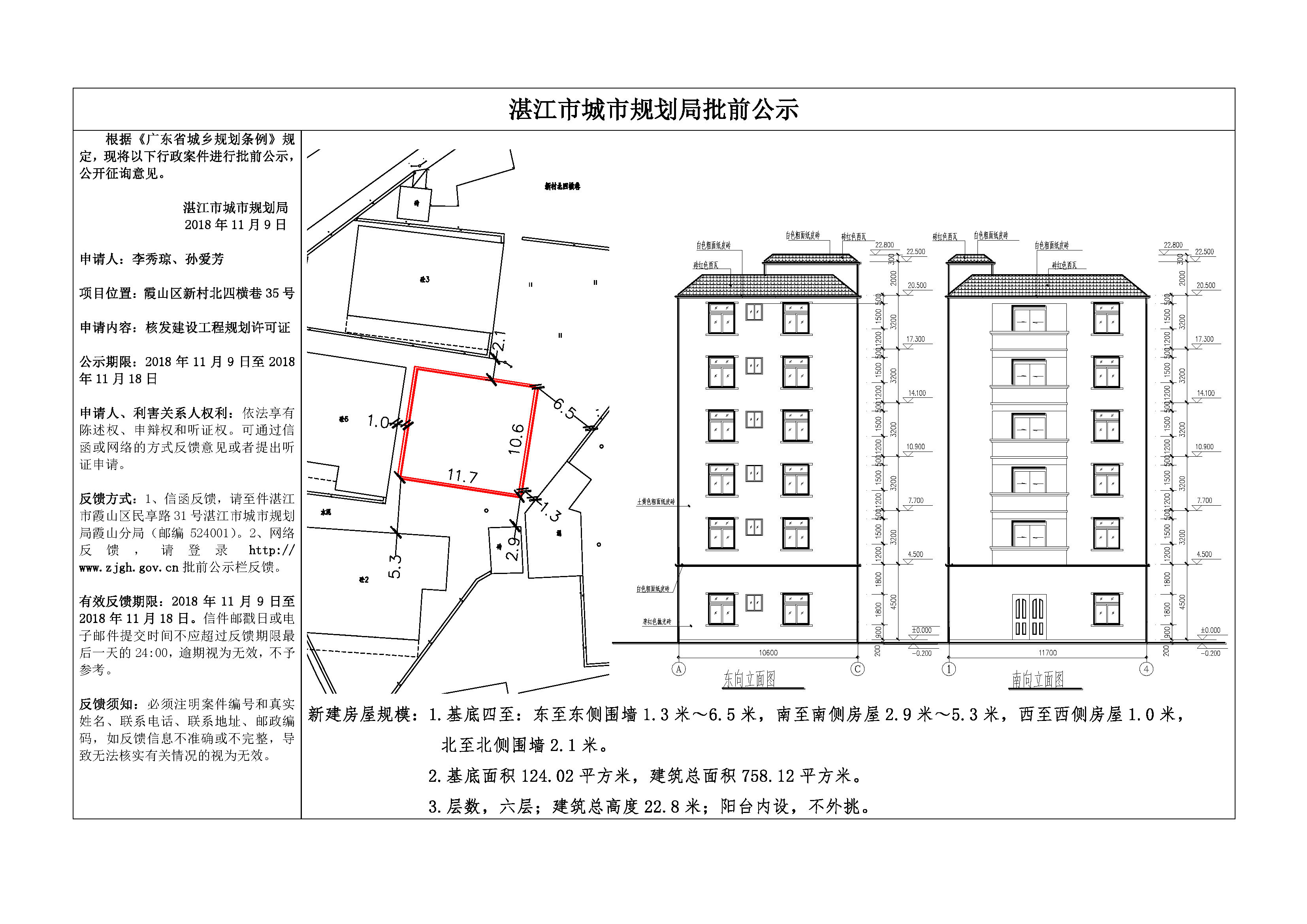 (李秀琼、孙爱芳)核发建设工程规划许可证批前公示(新村北四横巷35号)