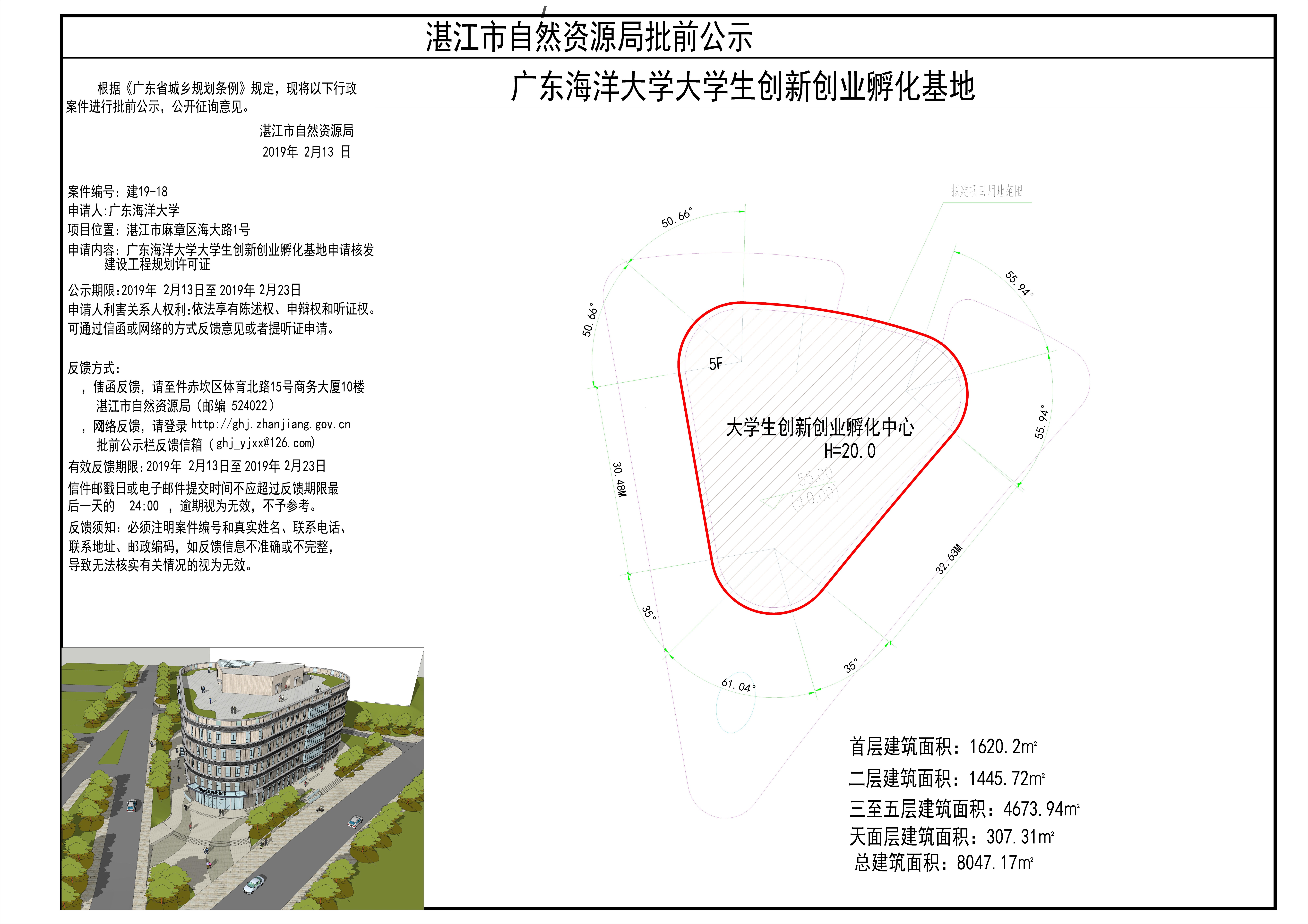 广东海洋大学大学生创新创业孵化基地申请核发建设工程规划许可证批前公示