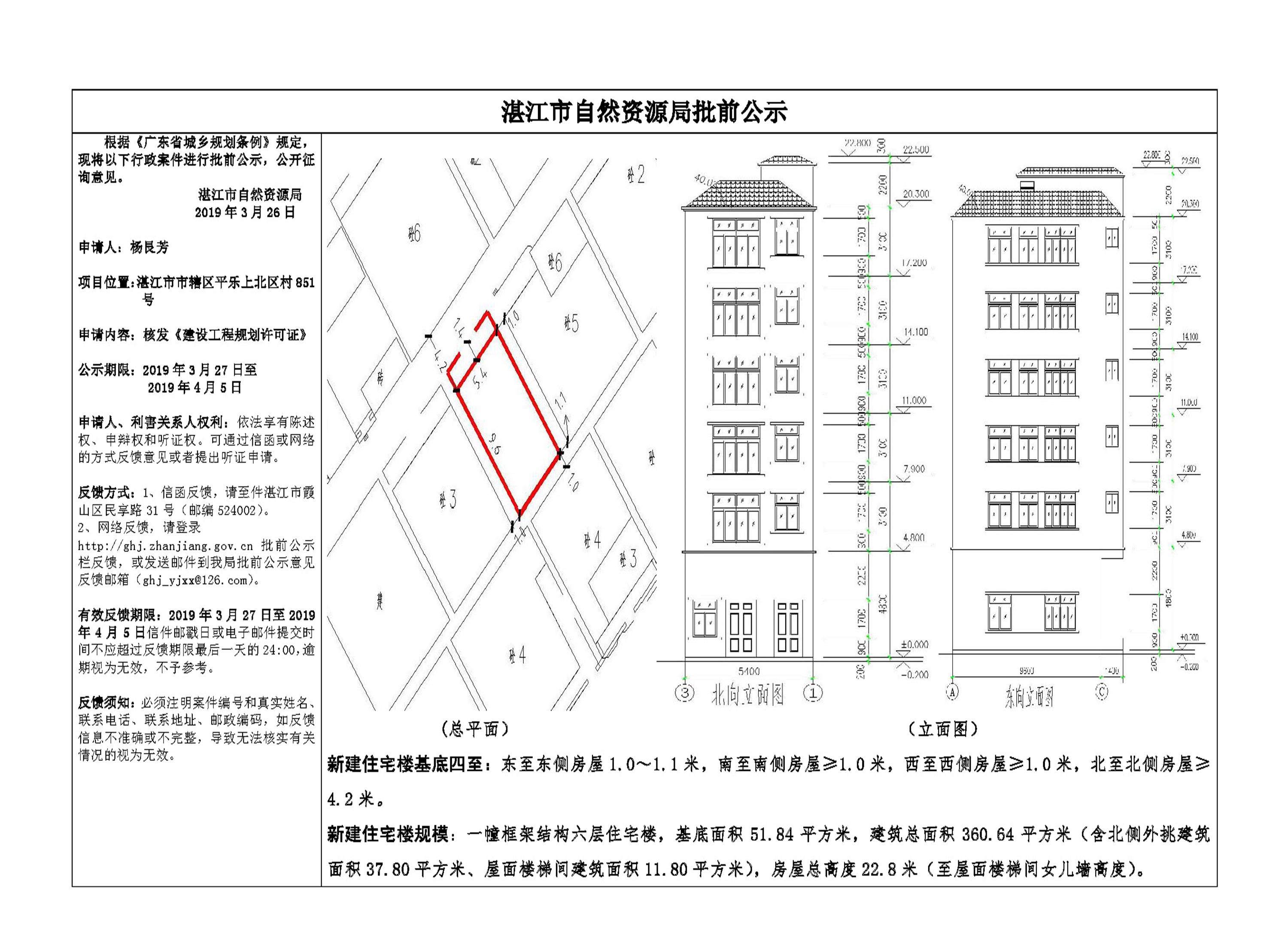 (杨艮芳)核发《建设工程规划许可证》批前公示
