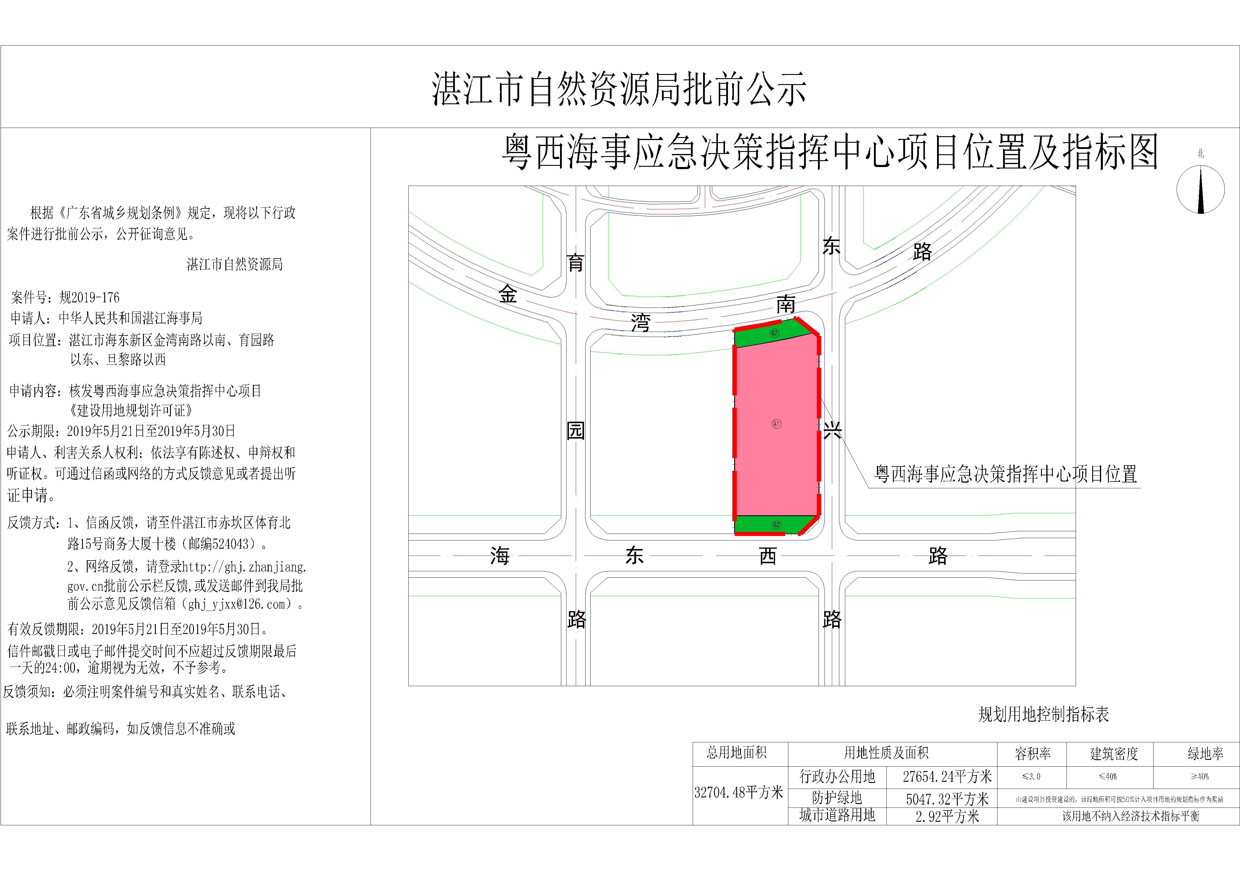 核发粤西海事应急决策指挥中心项目《建设用地规划许可证》批前公示