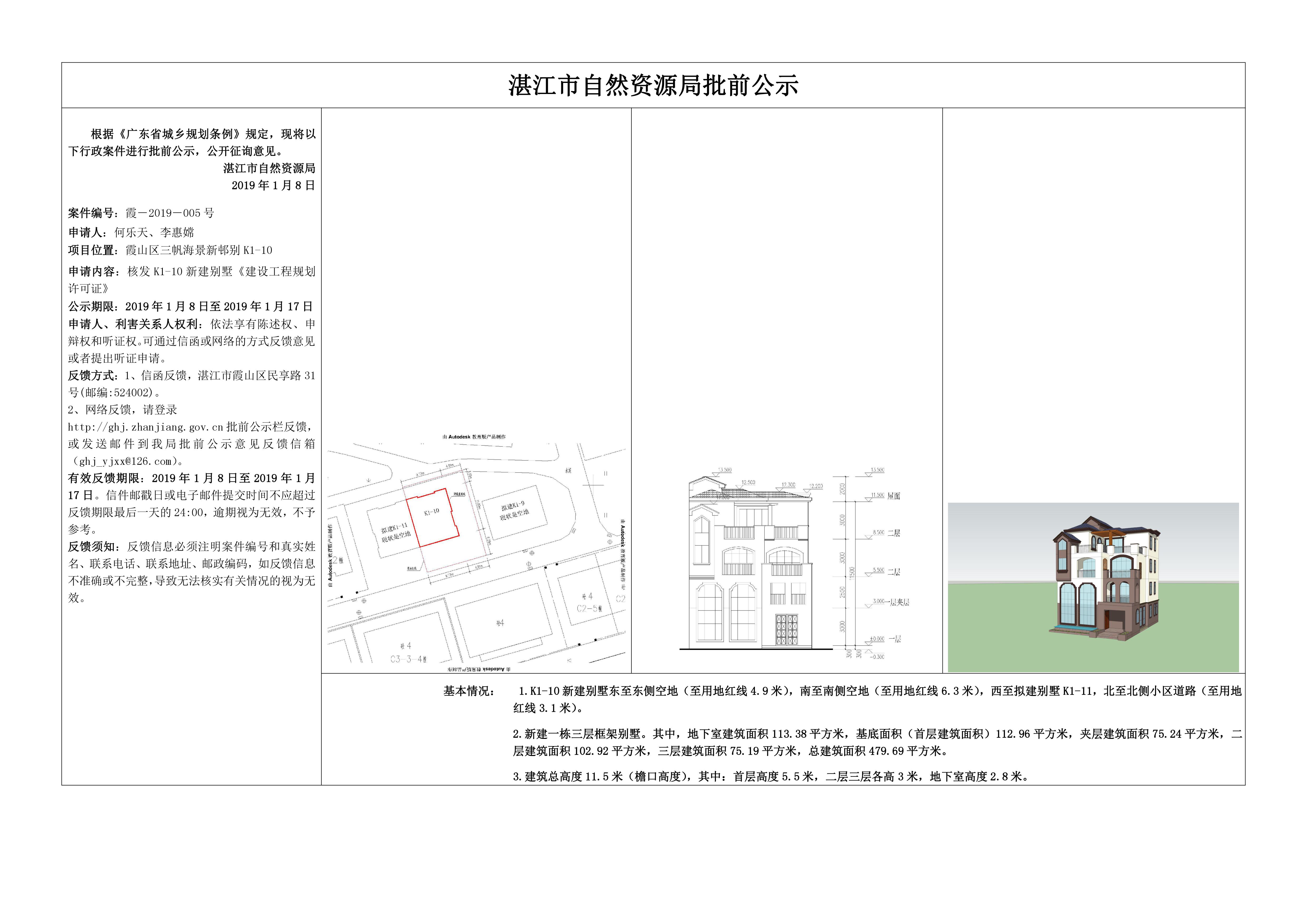 (何乐天、李惠嫦)核发三帆海景新邨别墅区K1-10《建设工程规划许可证》批前公示