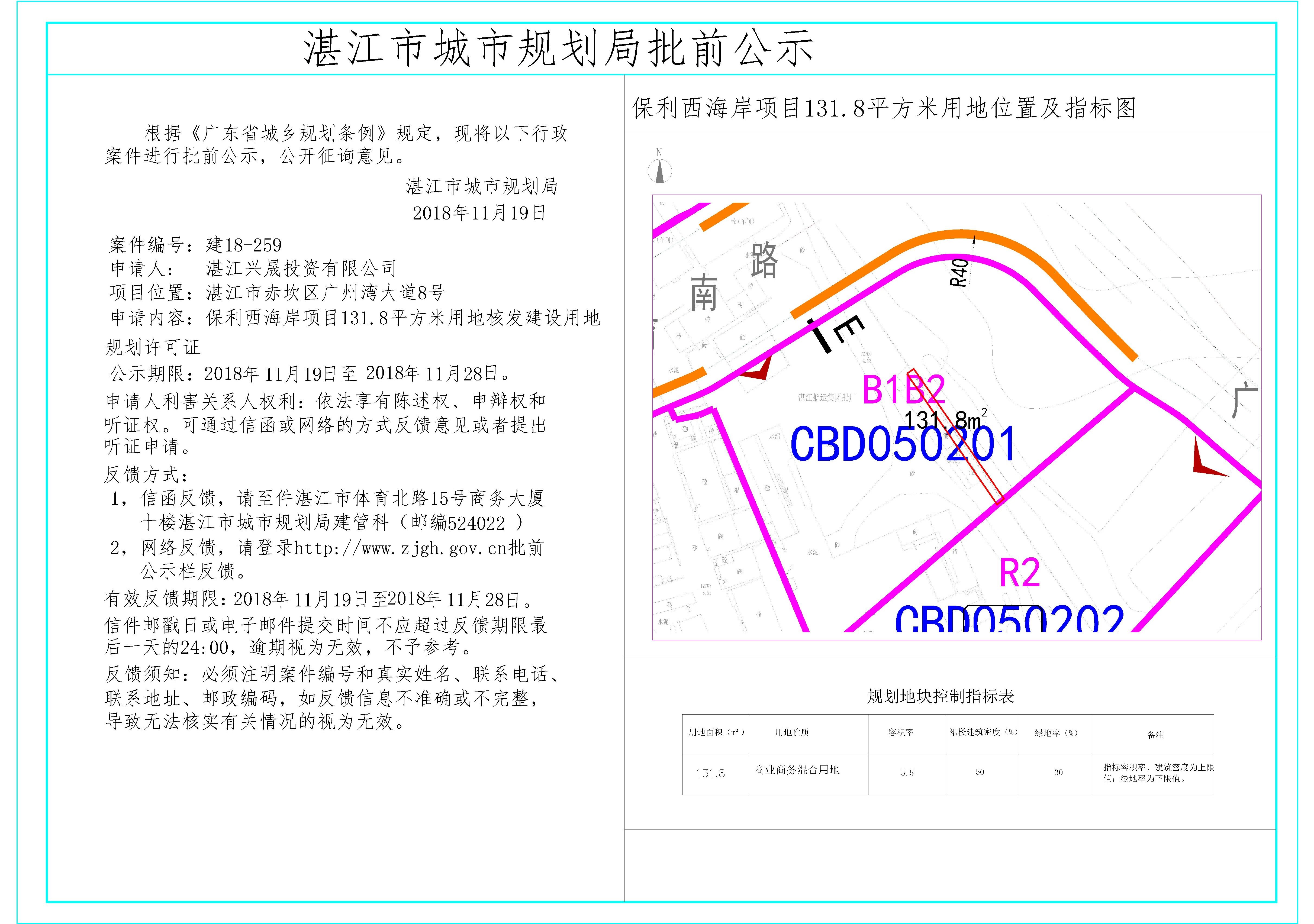 保利西海岸项目131.8平方米用地核发建设用地规划许可证批前公示