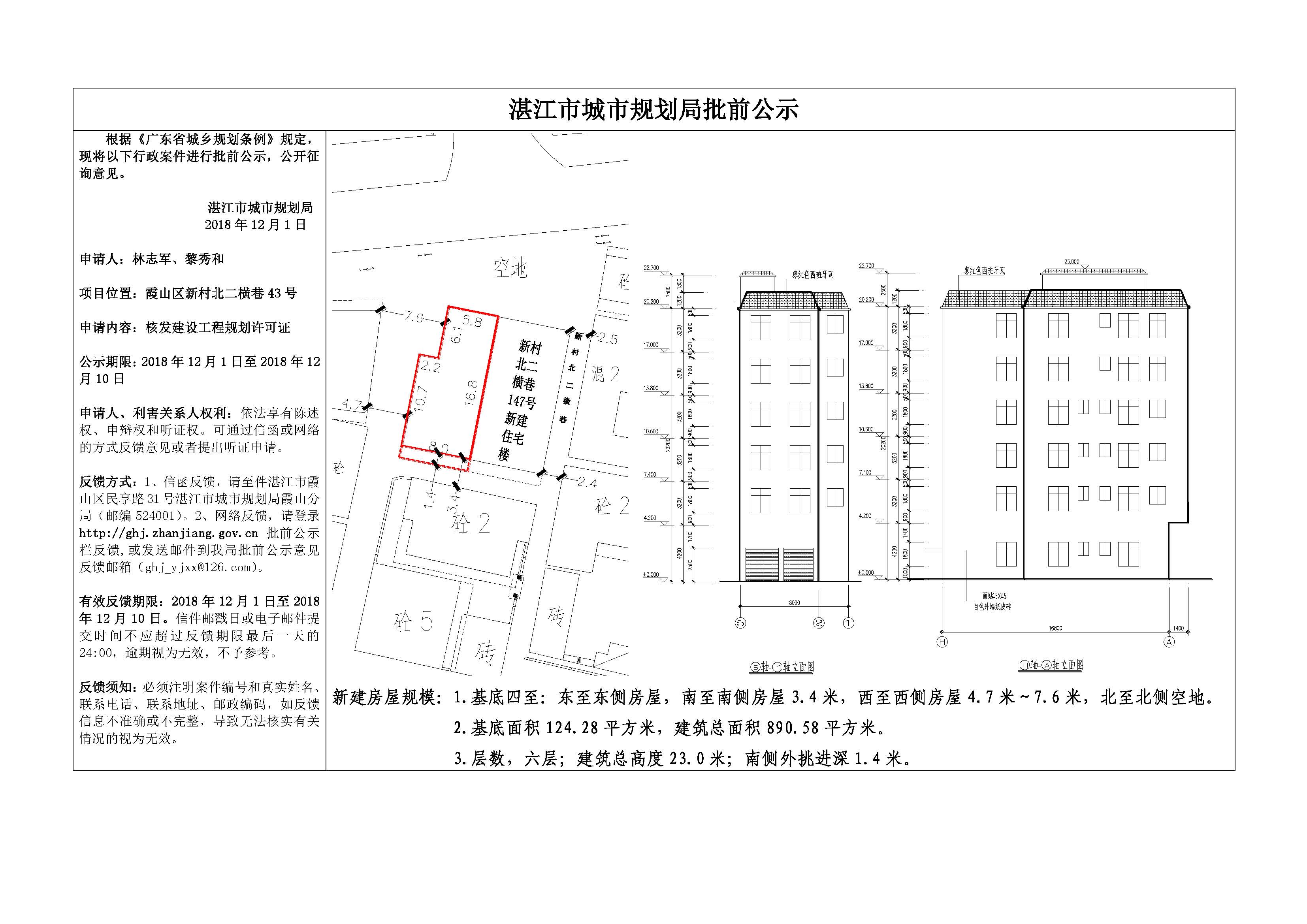 (林志军、黎秀和)核发建设工程规划许可证批前公示(新村北二横巷43号)