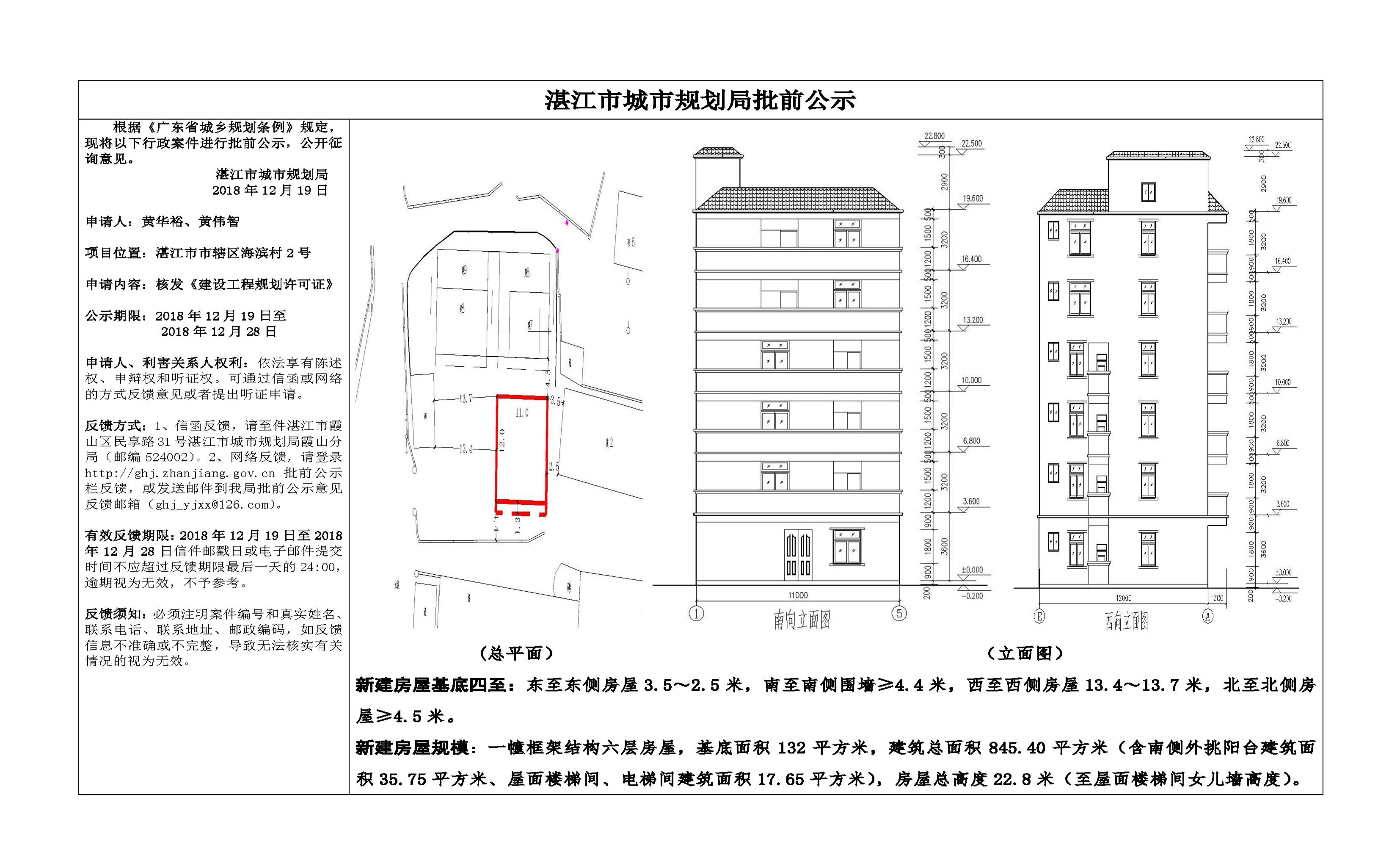 (黄华裕、黄伟智)核发《建设工程规划许可证》批前公示