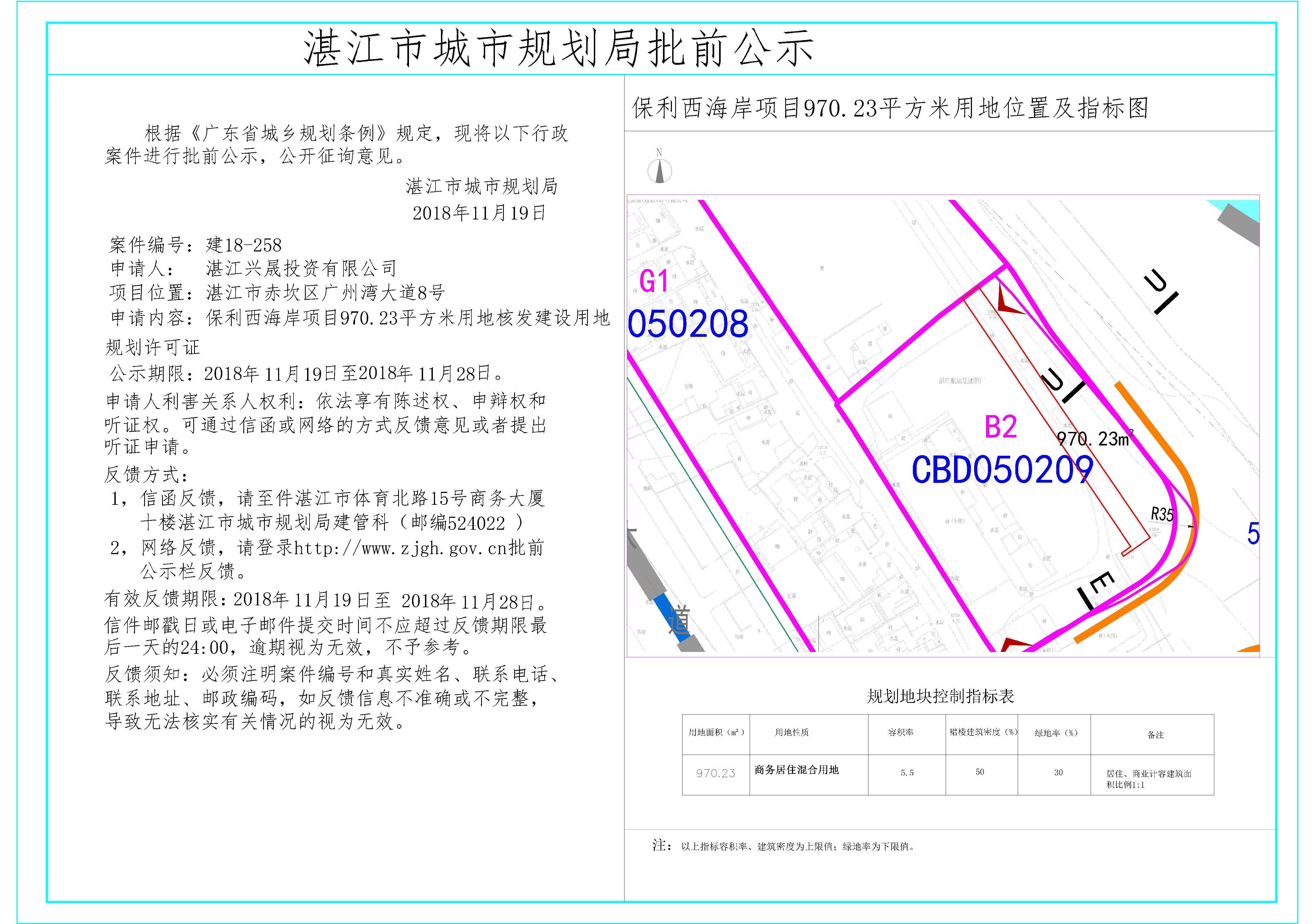 保利西海岸项目970.23平方米用地核发建设用地规划许可证批前公示