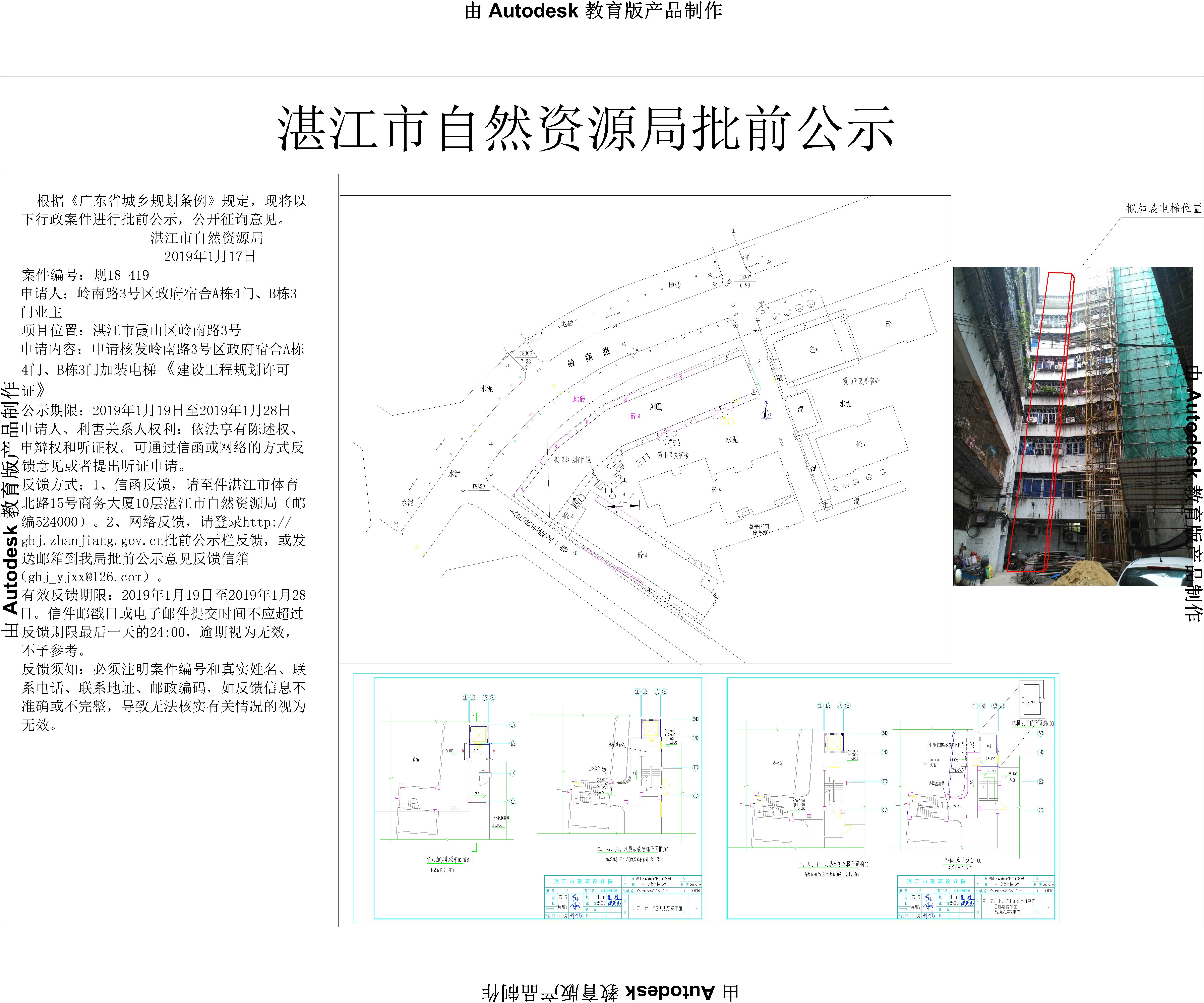 申请核发岭南路3号区政府宿舍A栋4门、B栋3门加装电梯《建设工程规划许可证》批前公示