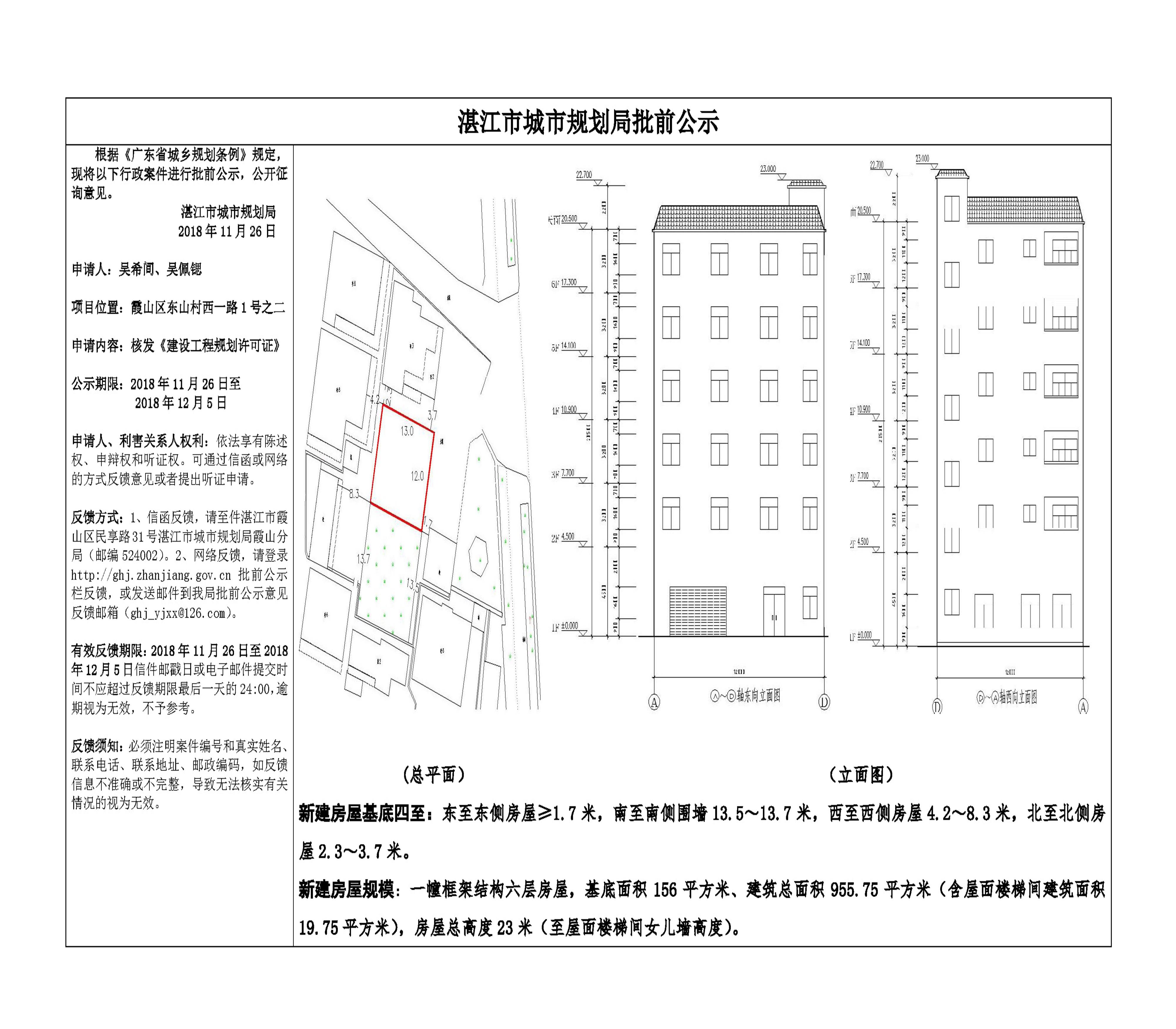 (吴希间、吴佩锶)核发建设工程规划许可证批前公示
