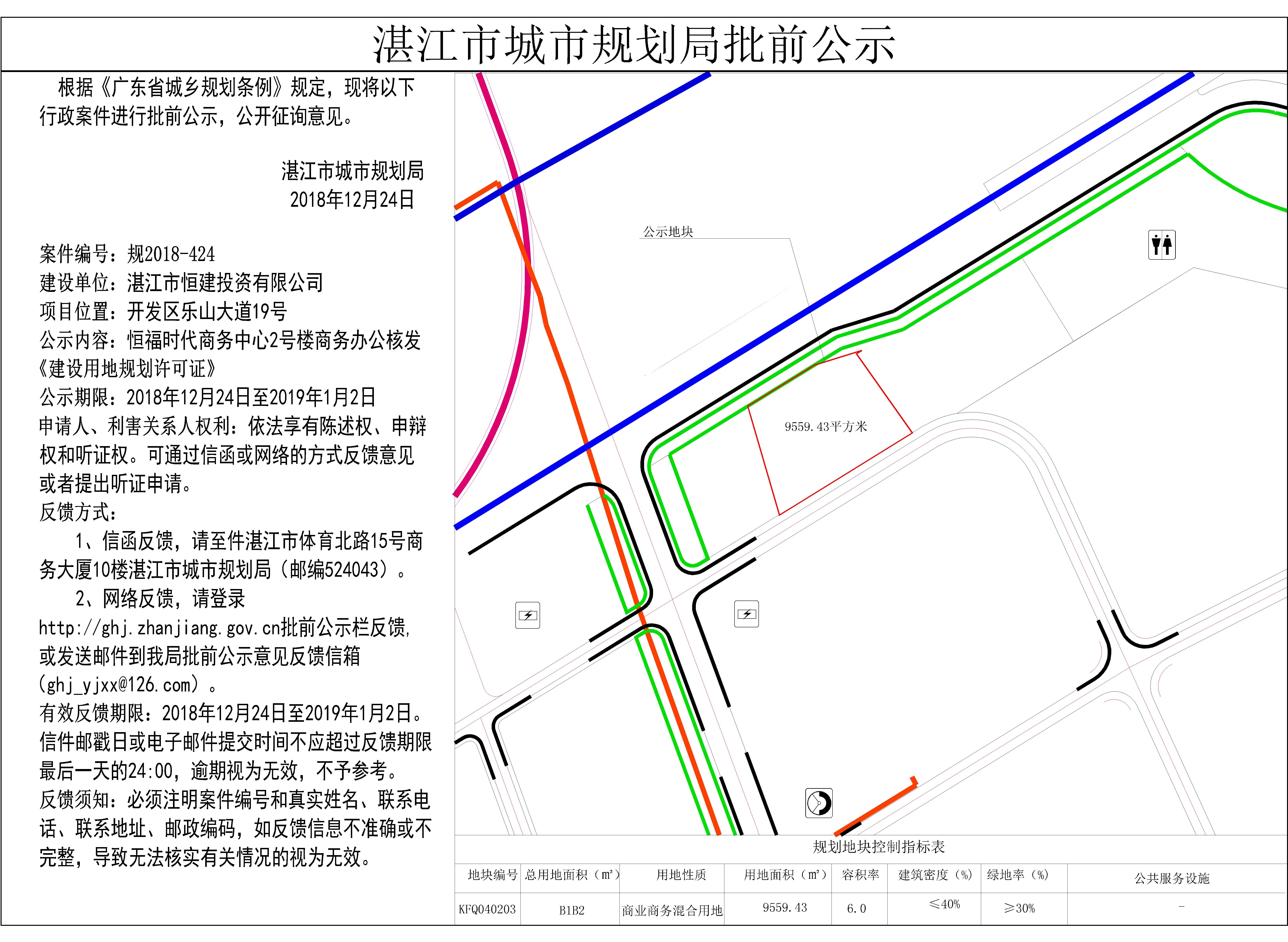 恒福时代商务中心2号楼商务办公核发《建设用地规划许可证》批前公示
