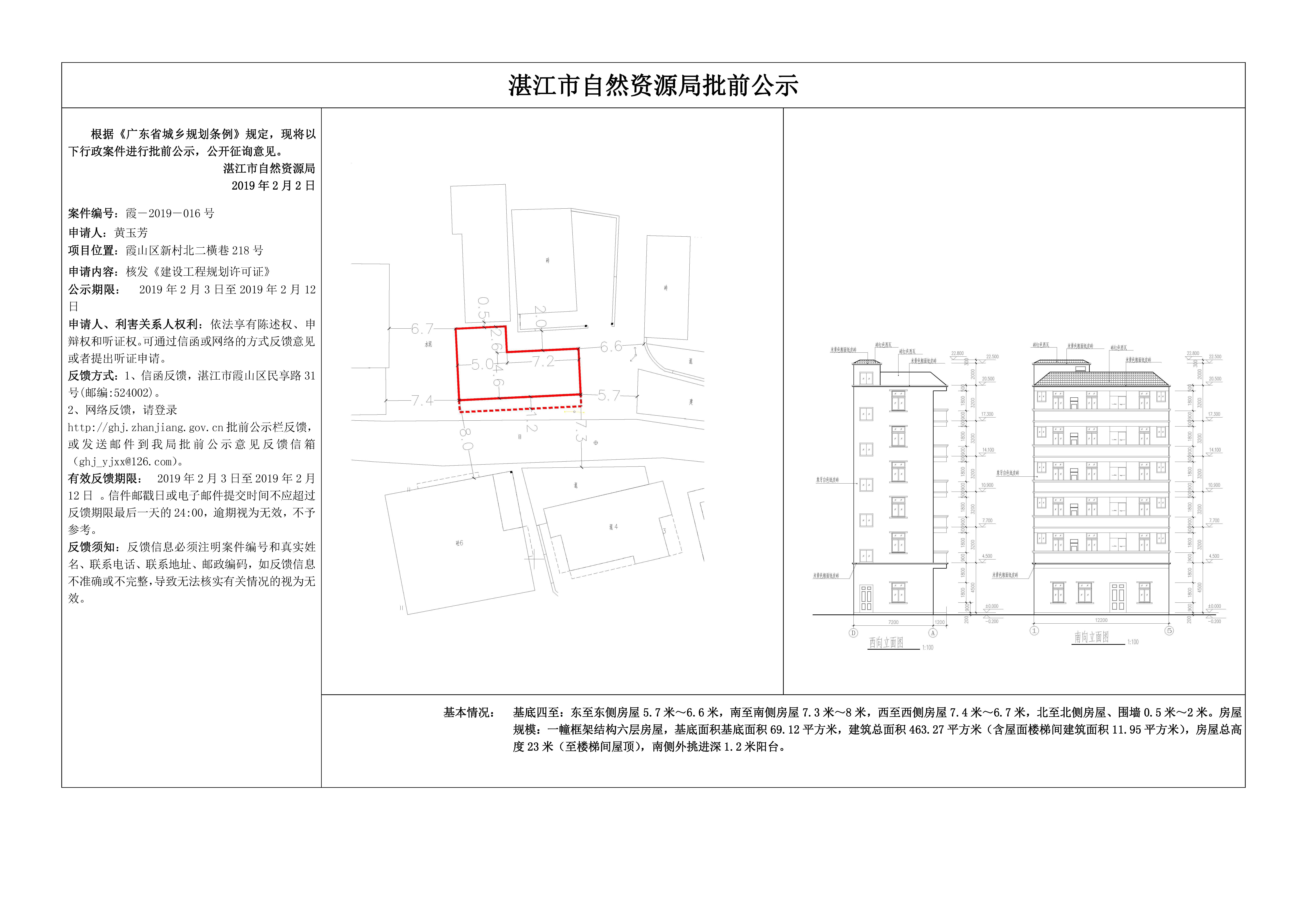 (黄玉芳)核发《建设工程规划许可证》批前公示