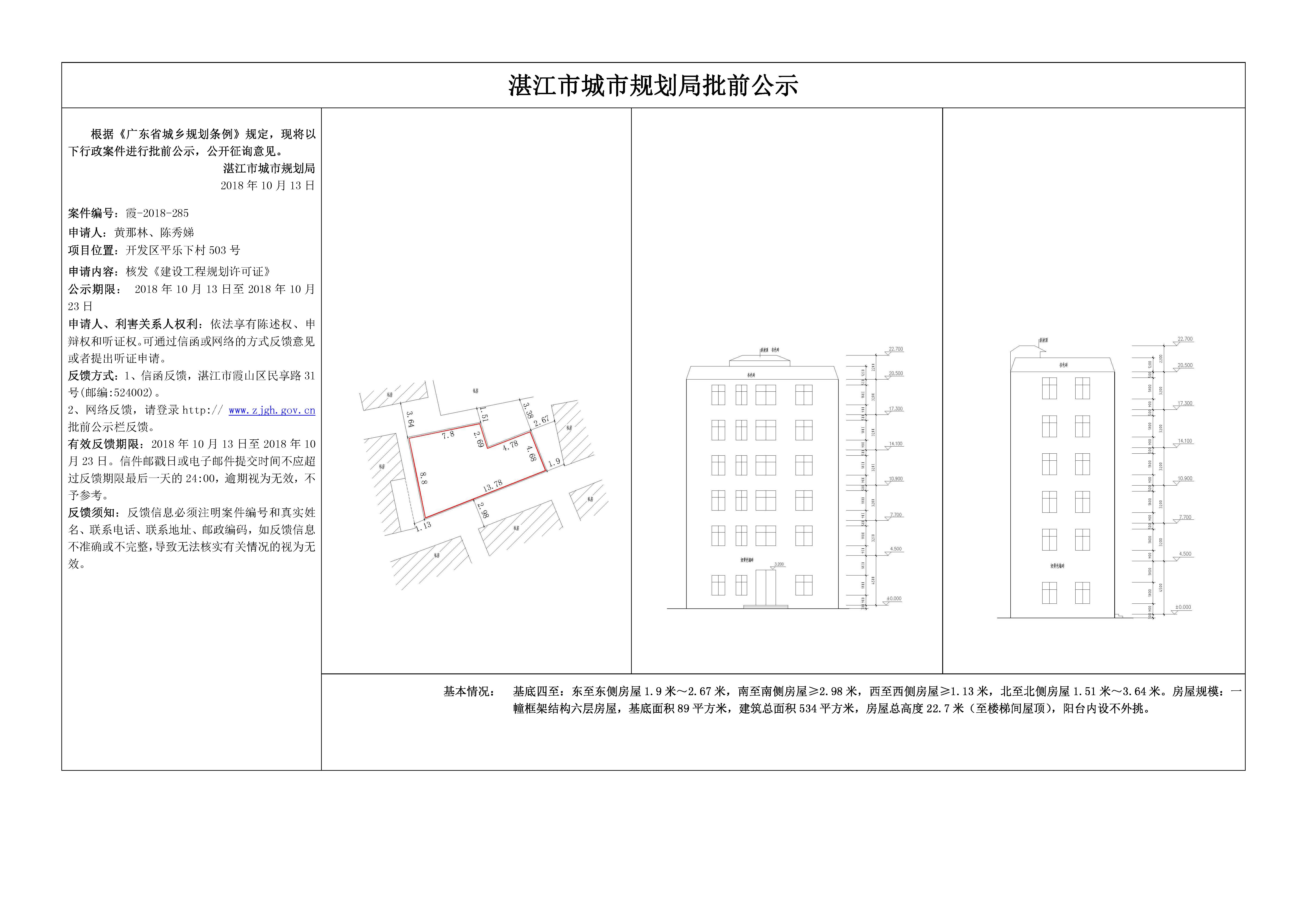(黄那林、陈秀娣)核发《建设工程规划许可证》批前公示