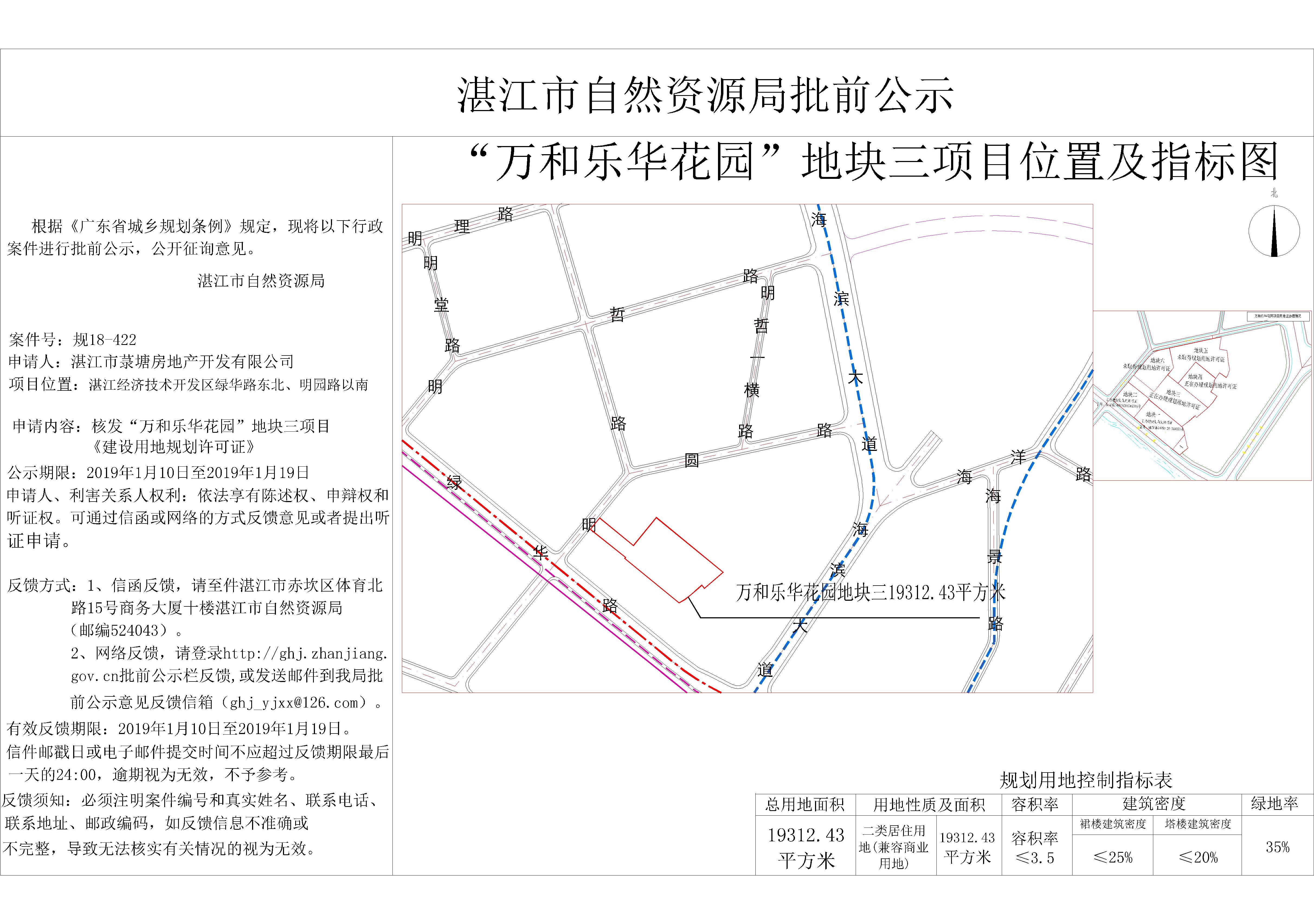 核发“万和乐华花园”地块三项目《建设用地规划许可证》批前公示