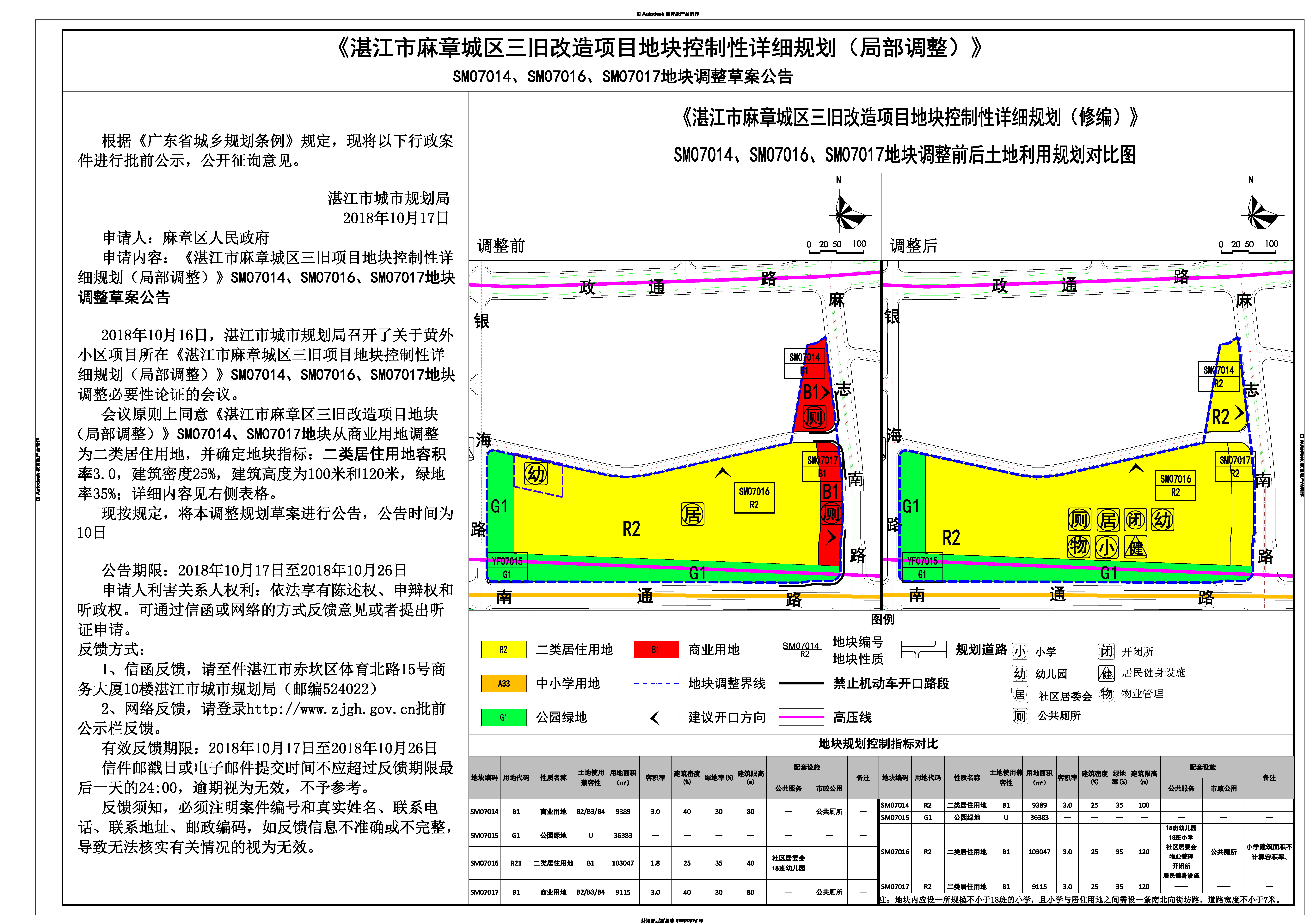 《湛江市麻章城区三旧改造项目地块控制性详细规划(局部调整)》批...