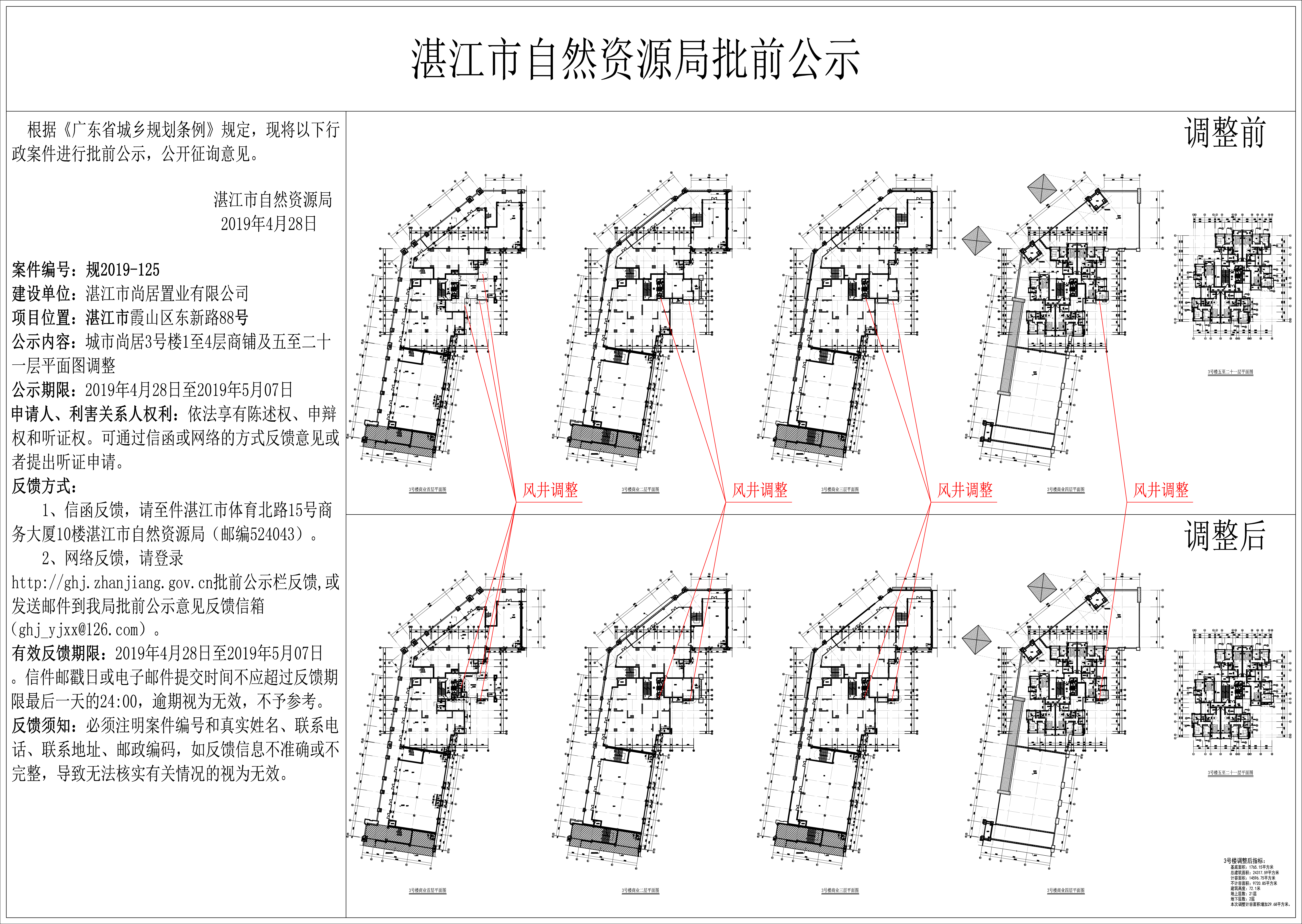 城市尚居3号楼1至4层商铺及五至二十一层平面图调整批前公示