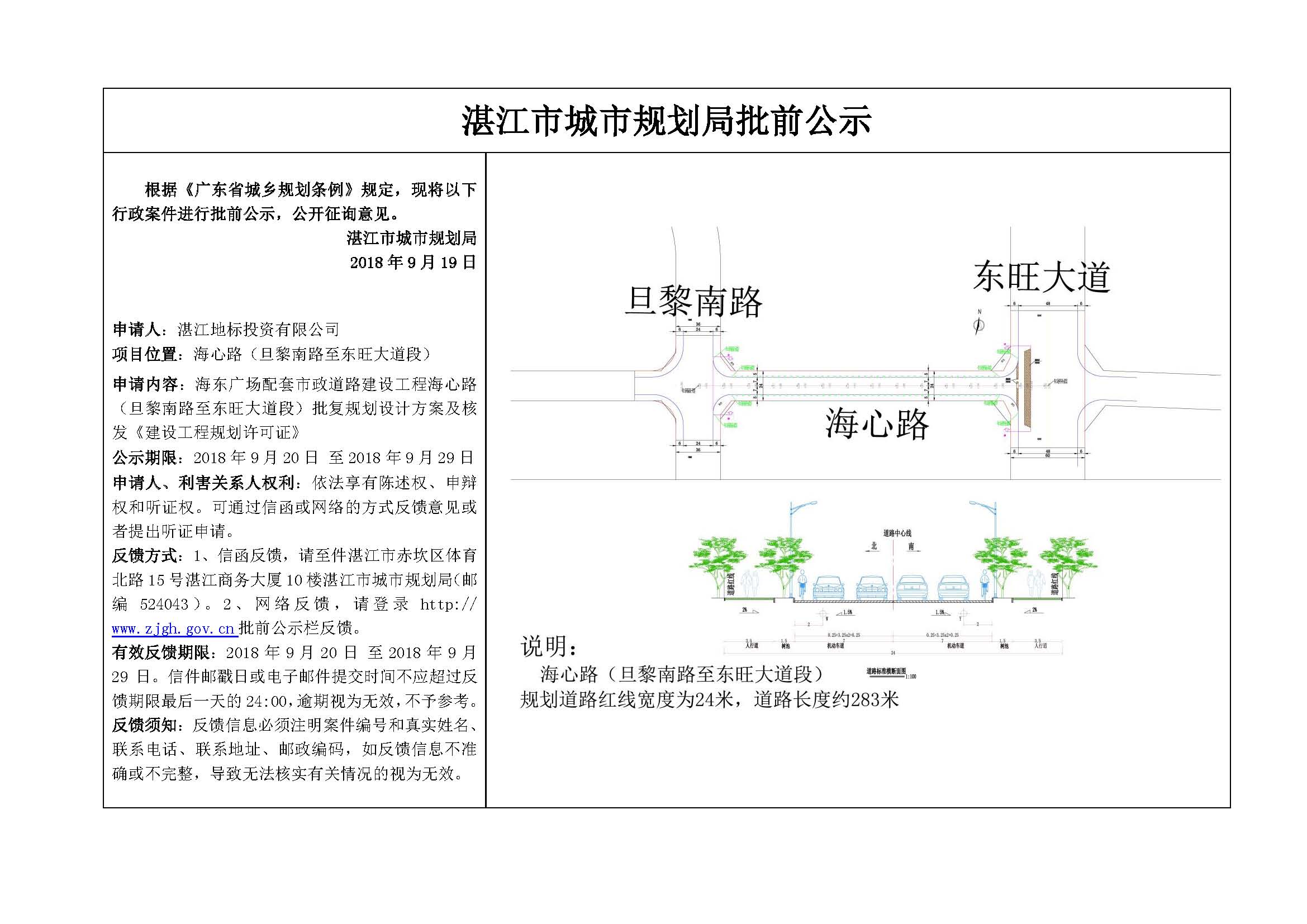 海东广场配套市政道路建设工程海心路(旦黎南路至东旺大道段)批复...
