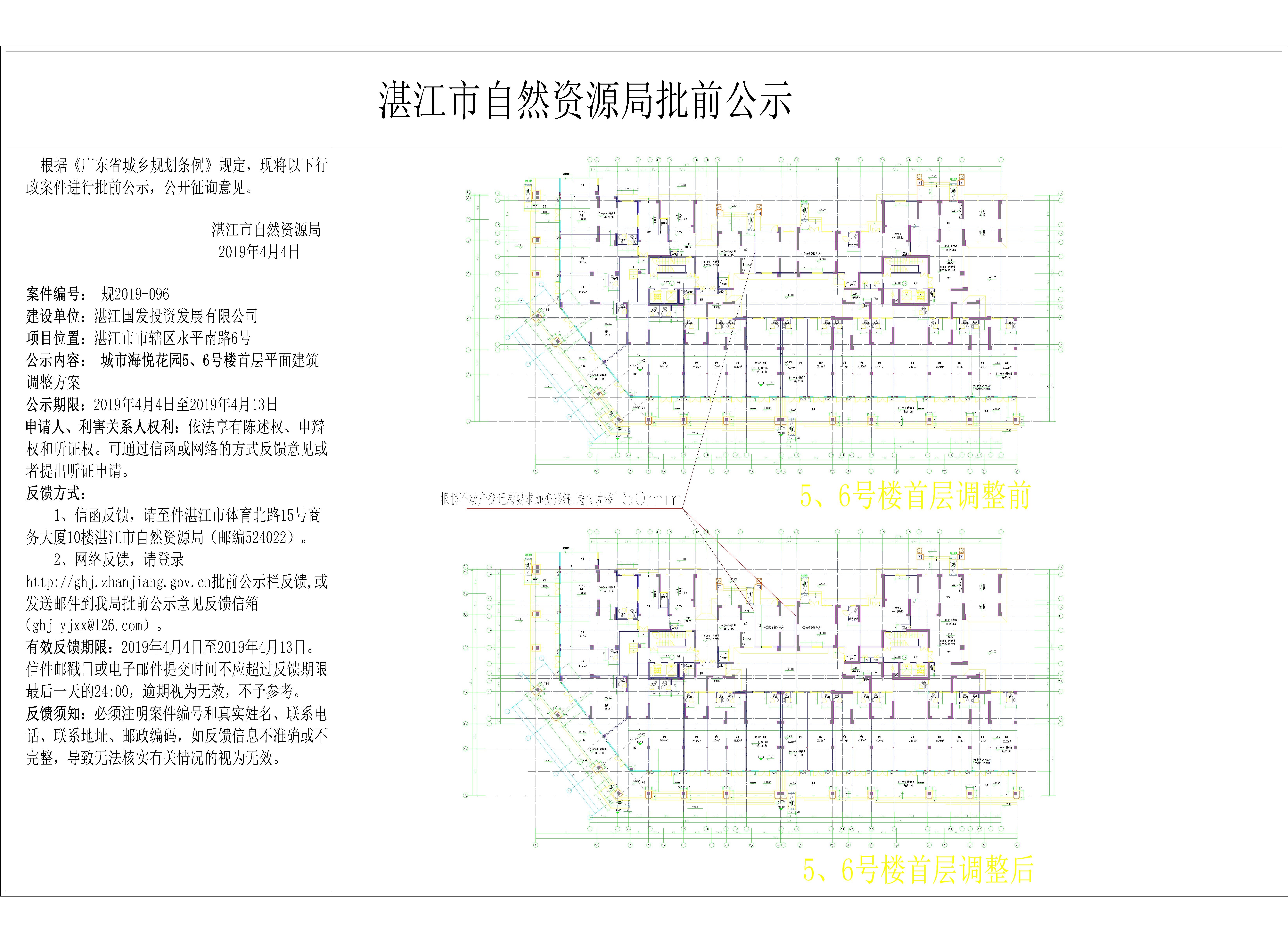 城市海悦花园5、6号楼首层平面建筑调整方案批前公示