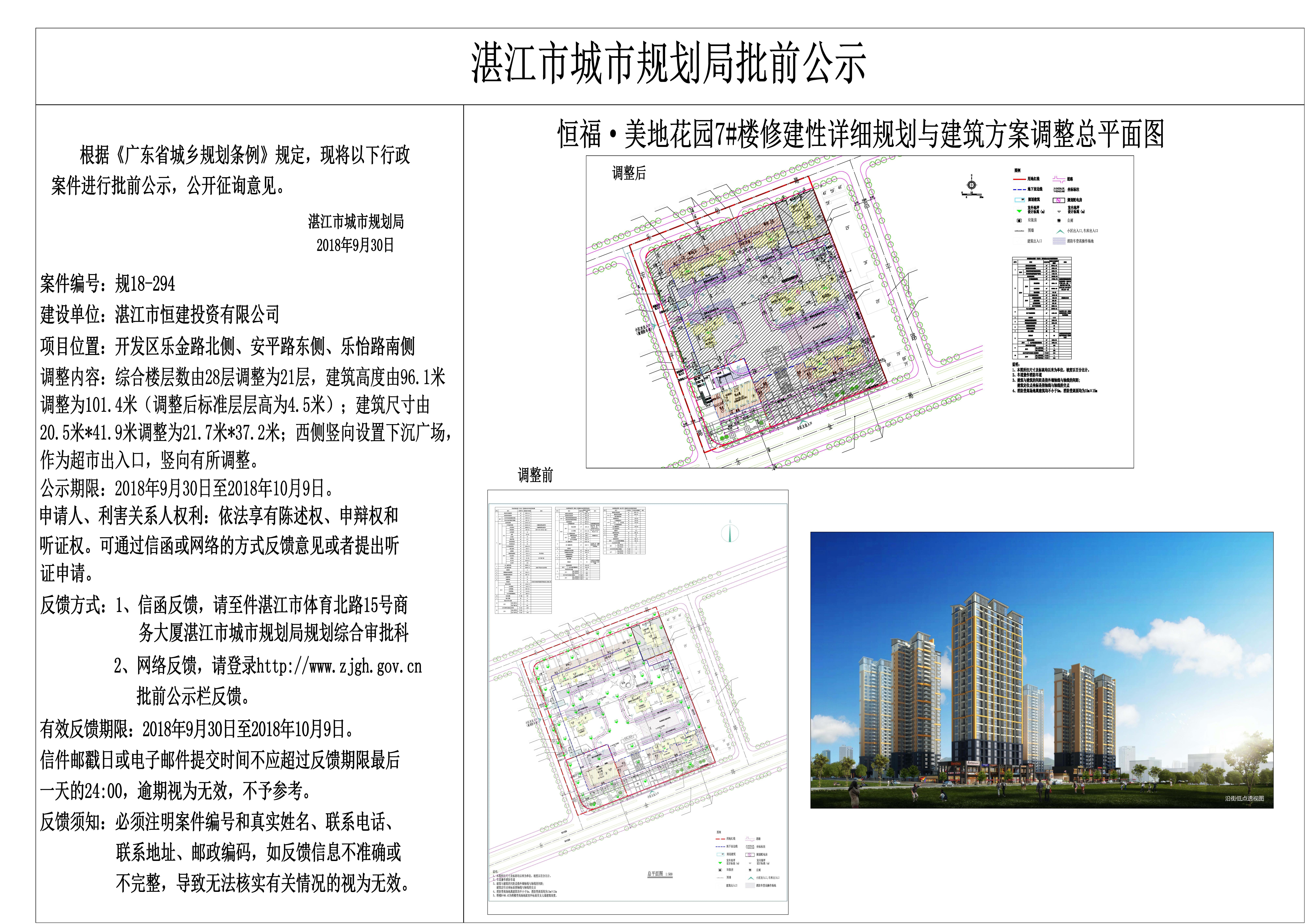 恒福-美地花园7#楼修建性详细规划与建筑方案调整批前公示