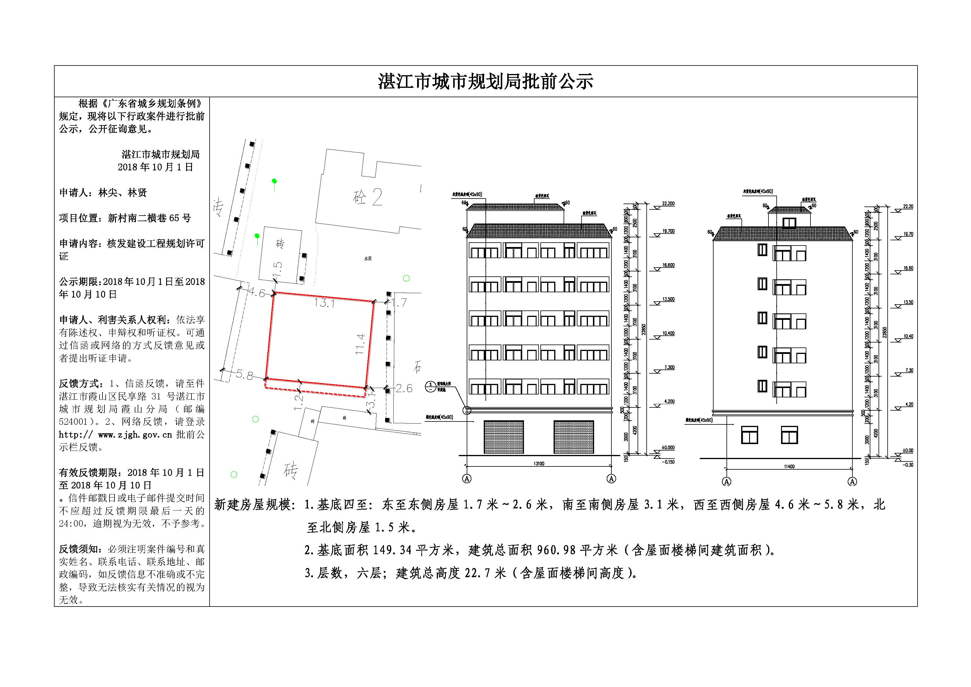 核发建设工程规划许可证批前公示(新村南二横巷65号,林尖、林贤)