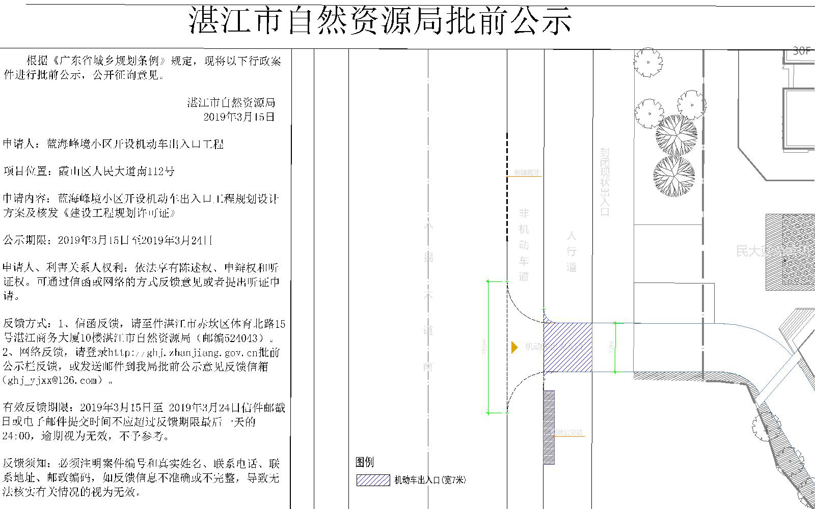 蓝海峰境小区开设机动车出入口工程规划设计方案及核发《建设工程规划许可证》批前公示