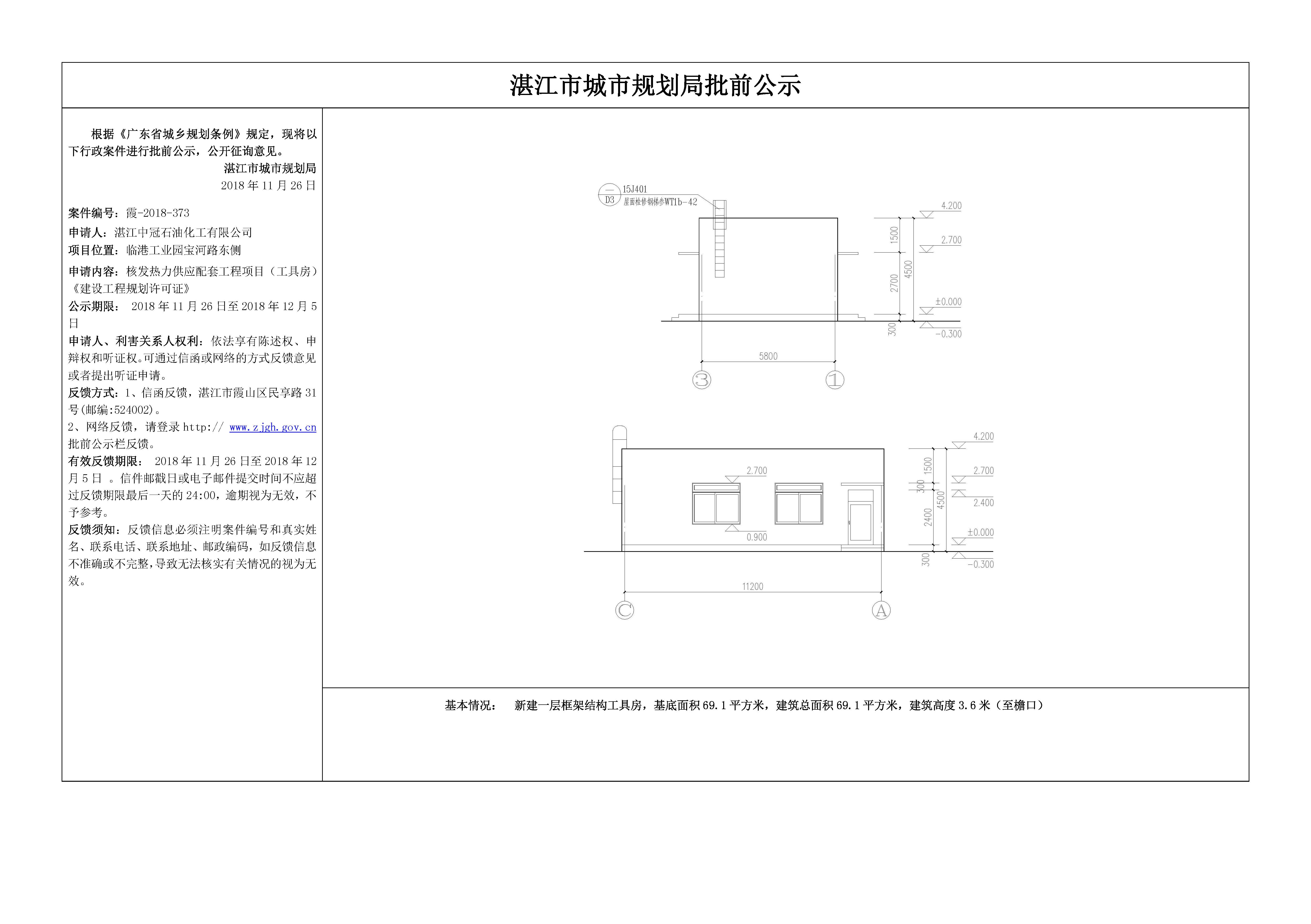核发热力供应配套工程项目(工具房)《建设工程规划许可证》批前公示