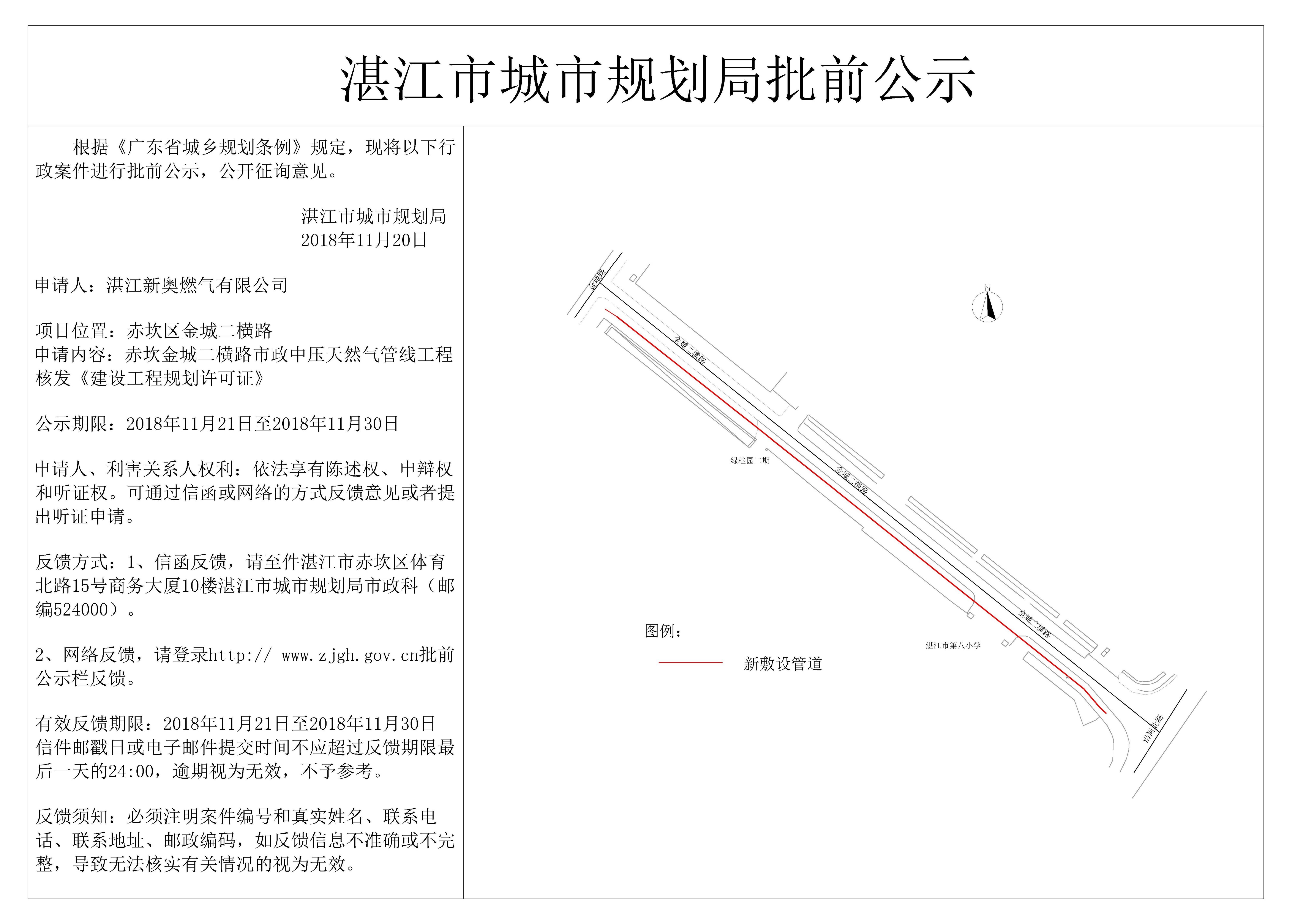 赤坎金城二横路市政中压天然气管线工程核发《建设工程规划许可证》...
